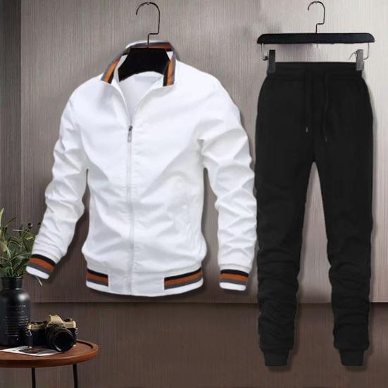 Представляем наш мужской спортивный костюм-куртку — идеальное сочетание комфорта и стиля для всех типов телосложения.. Этот костюм спроектирован так, чтобы быть свободным и повседневным, обеспечивая удобную посадку, не ограничивая формы тела.. Общий однотонный цвет добавляет нотку изысканности, а дизайн в полоску, соответствующий цвету, добавляет модности и модности.