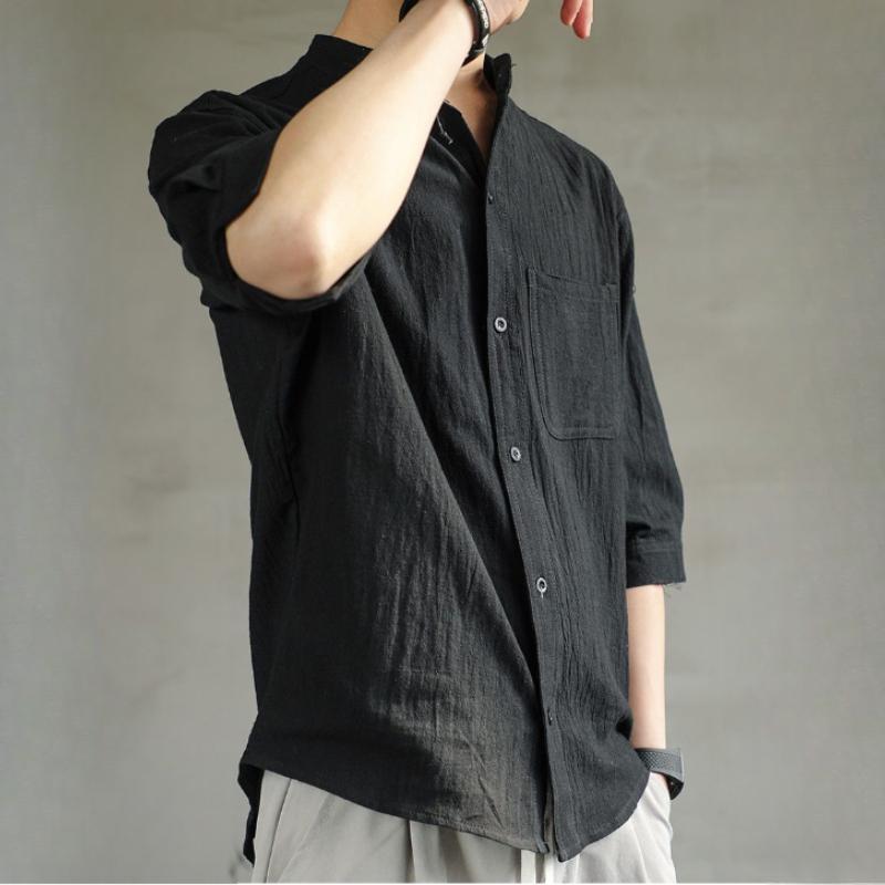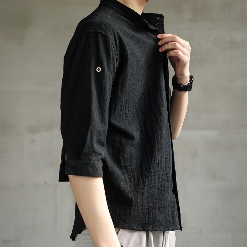Льняная рубашка мужская летняя мода хлопок и лен рукав три четверти рубашка в китайском стиле с коротким рукавом