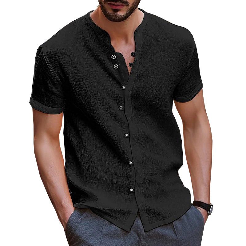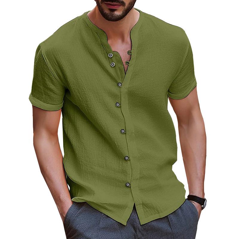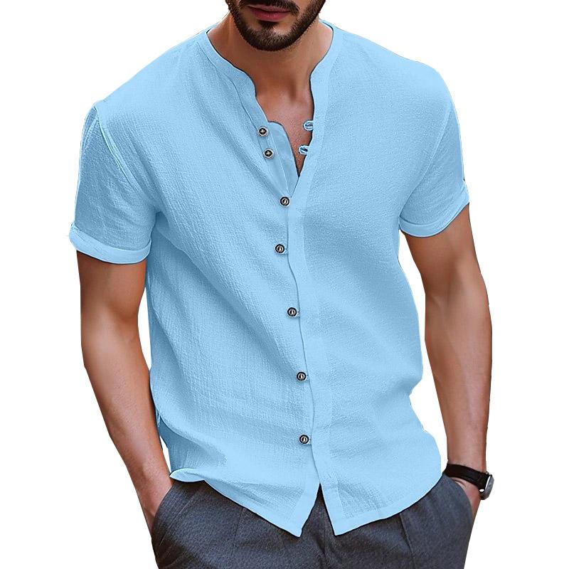 Летняя белая рубашка, мужские хлопковые льняные топы, мужские рубашки с короткими рукавами и пуговицами, однотонные синие, черные рубашки