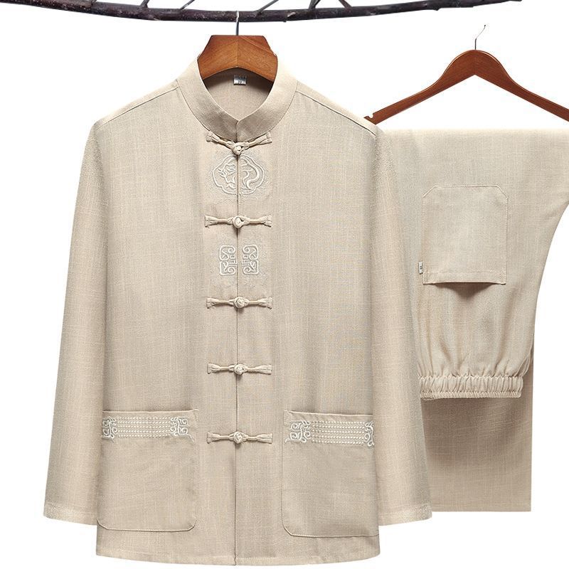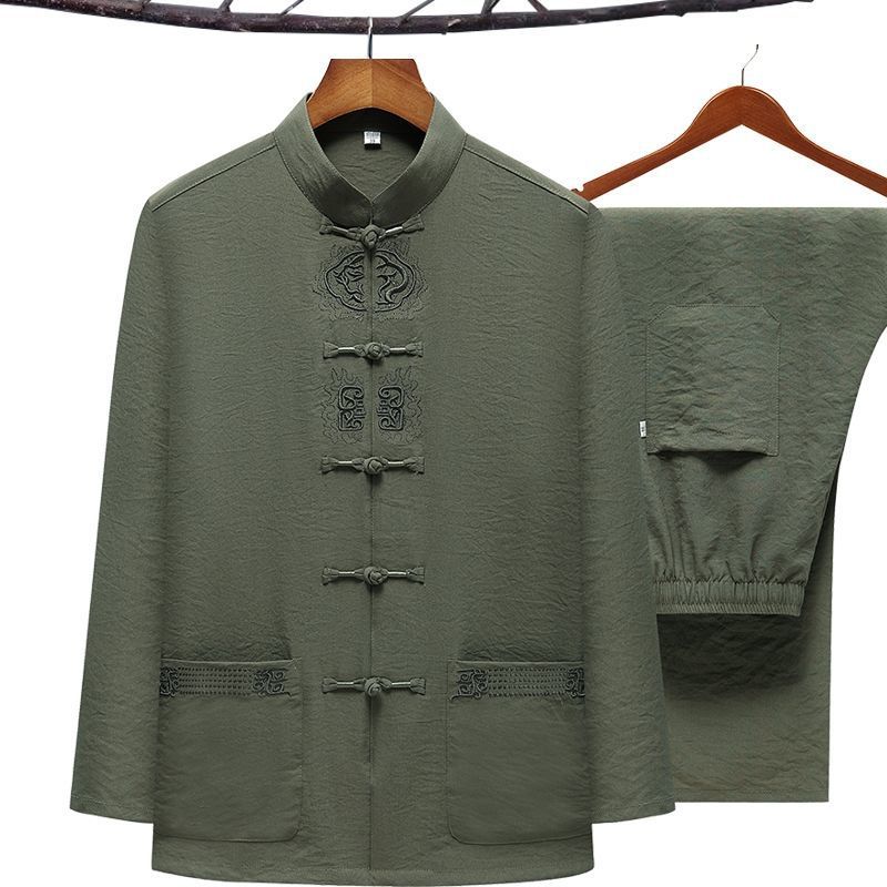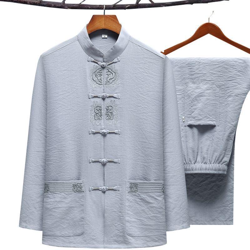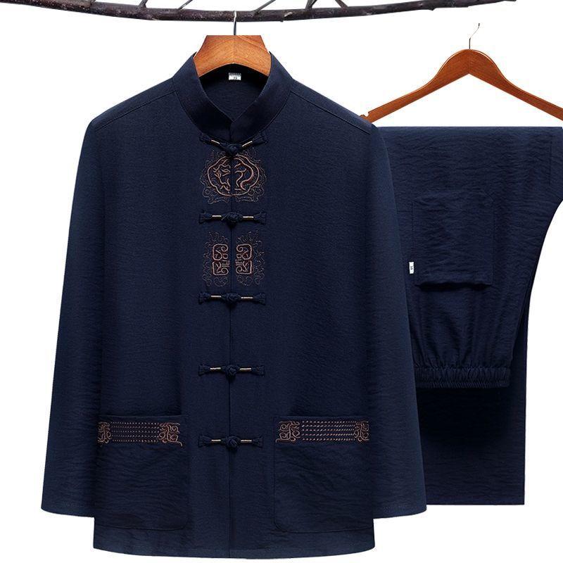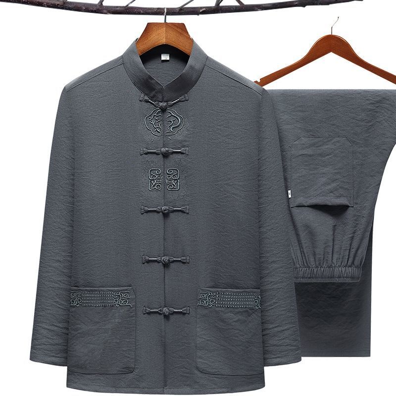 Большой размер мужской костюм кунг-фу вышитый костюм Тан весна осень 2 шт рубашка и брюки китайская традиционная одежда тайцзи 3XL 4XL 5XL