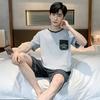Большие размеры летняя мужская хлопковая пижама трикотажные шорты с коротким рукавом комплект простая и легкая в уходе однотонная пижама с круглым вырезом домашняя одежда