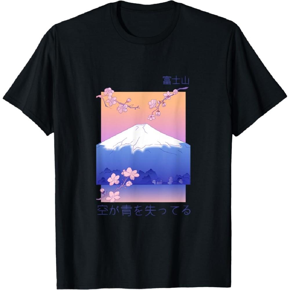 Японский горный пейзаж вейпорвейв природа цветы снег футболка