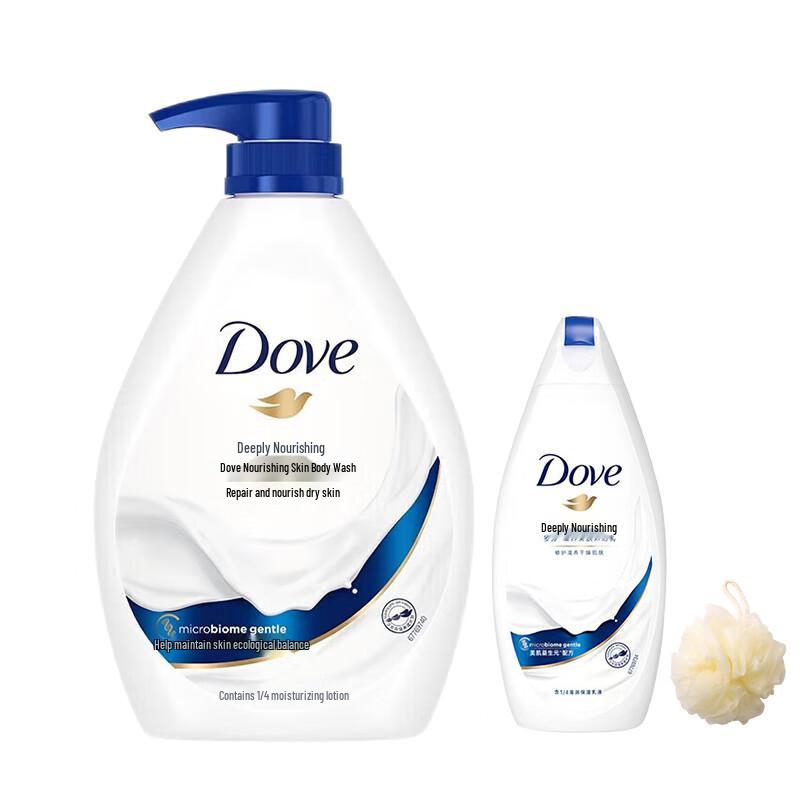 Experience the luxurious care of Dove Deeply Nourishing Beauty Shower Milk. This set includes a 680g bottle of deeply nourishing shower milk, a 190g shower gel, and a bath ball for a complete bathing experience. It moisturizes, hydrates, and cleanses, leaving your skin soft and fragrant.