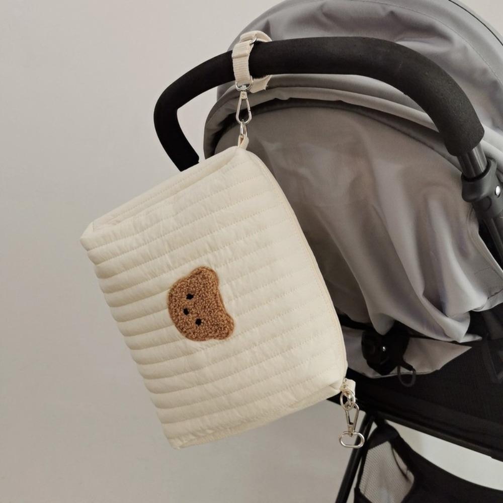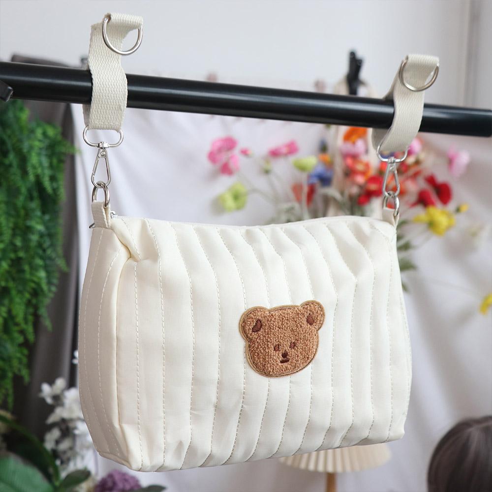 Стеганая хлопковая сумка для хранения в коляску, сумка для мамы с мишкой, сумка-органайзер для коляски, аксессуары для детской коляски