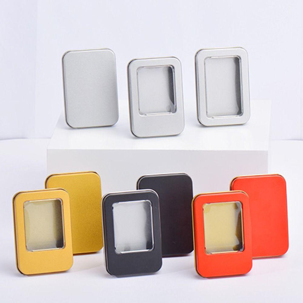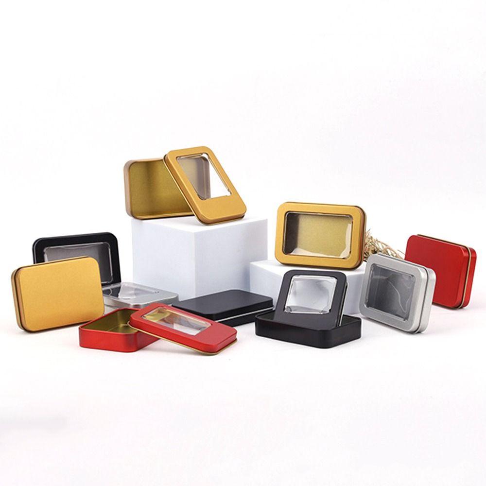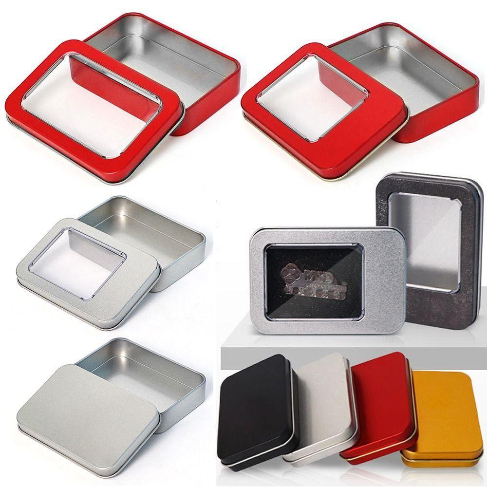 Разноцветная жестяная коробка с прозрачной крышкой-окном, пустая жестяная коробка для хранения, витрина для дизайна ногтей, домашнее использование
