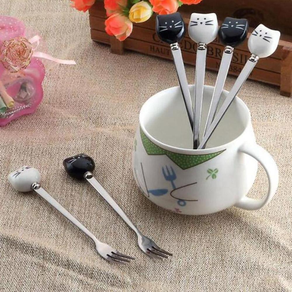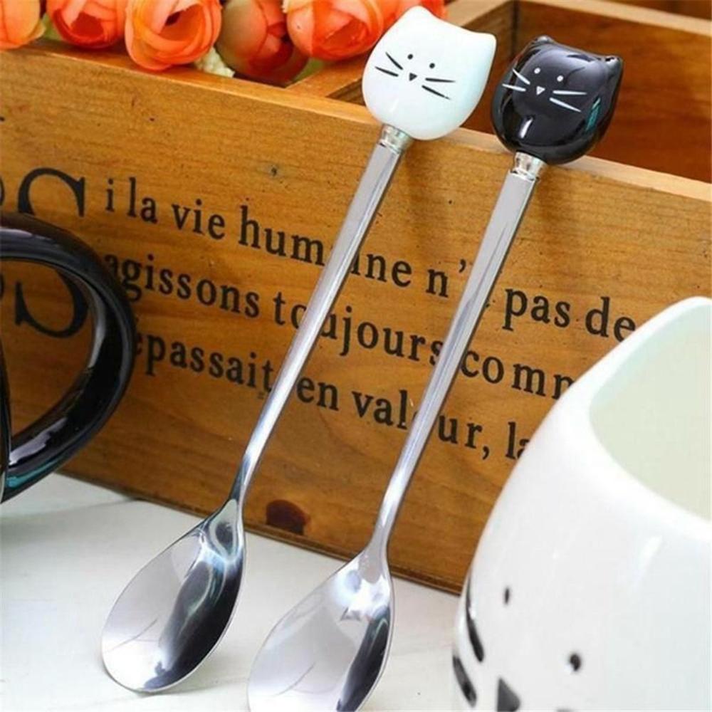 Stainless Steel Cute Animals Tableware Cat Dessert Spoon Tea Spoons Stirring Tool Coffee Stirrer