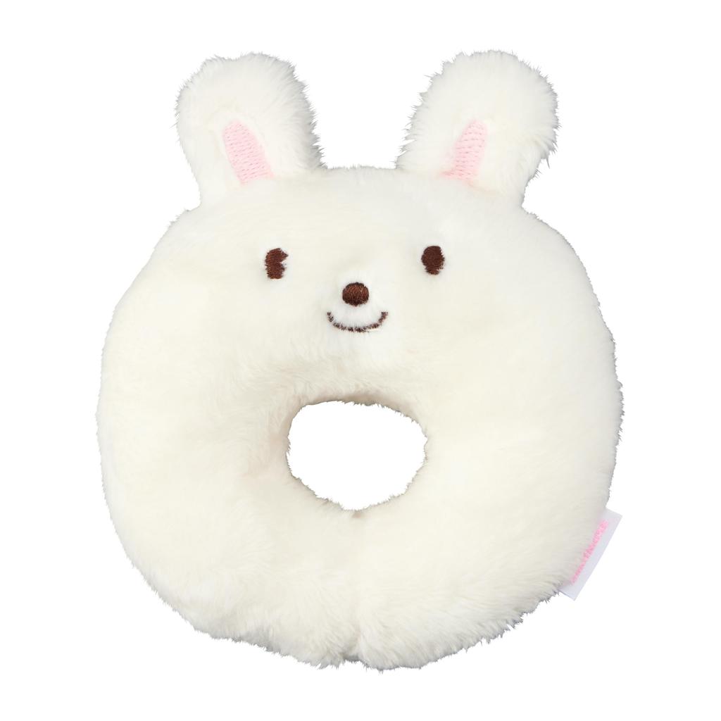 Miki House Rattle, Made in Japan, Bear and Rabbit Squeeze Toy, Baby Toy for Boys and Girls, Baby Gift, 46-1313-141, White