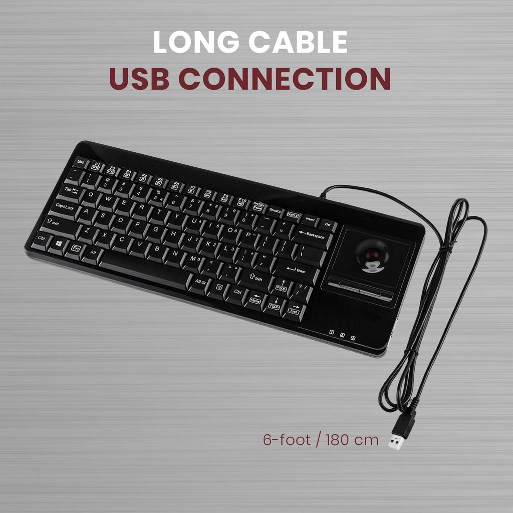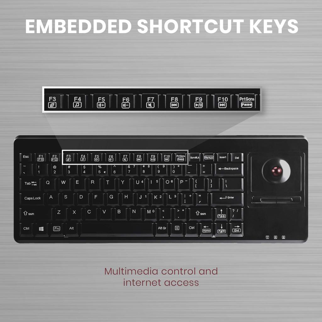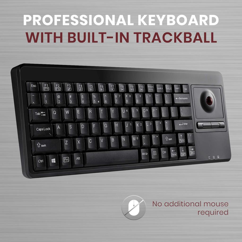 Perixx PERIBOARD-514 Keyboard with Trackball, Wired, 19-inch Rack Compatible, English Layout (Includes Two USB Hubs)