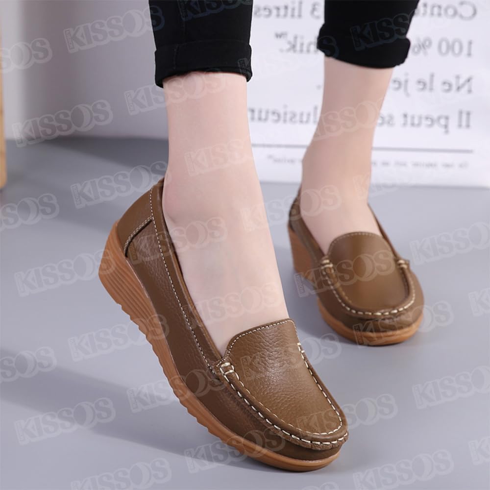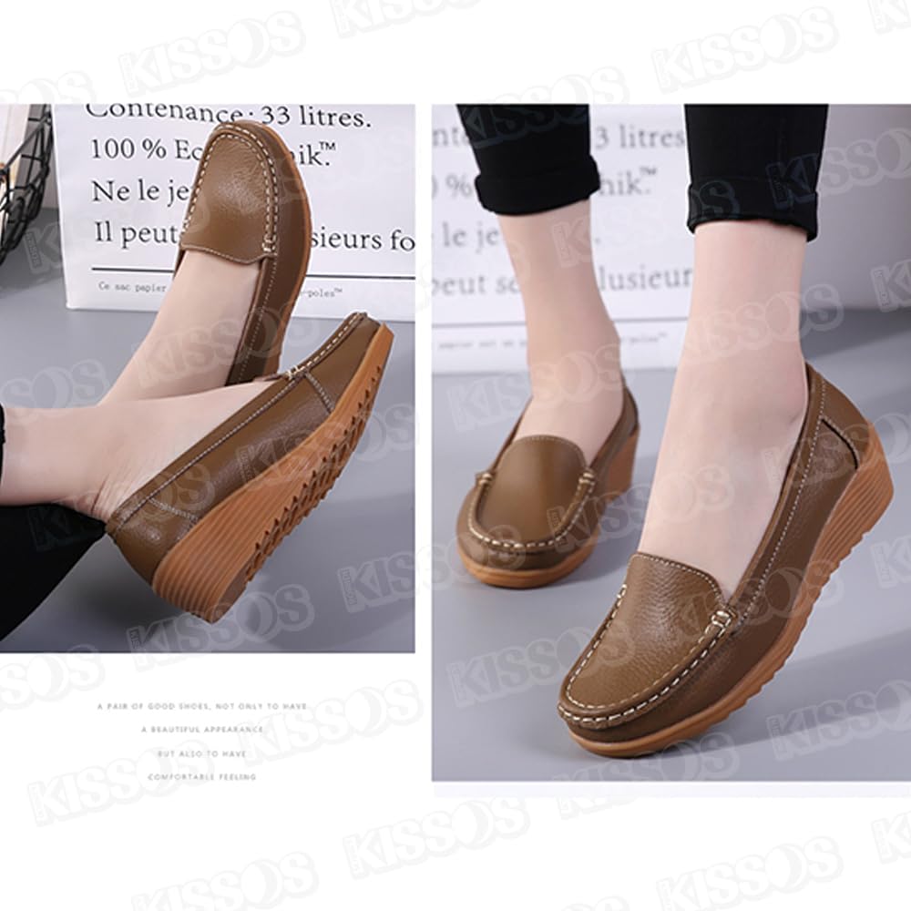 KISSOS Women's Loafers, Driving Shoes, Slip-On Flats, Casual Shoes (Khaki, Size 24.5cm (39))