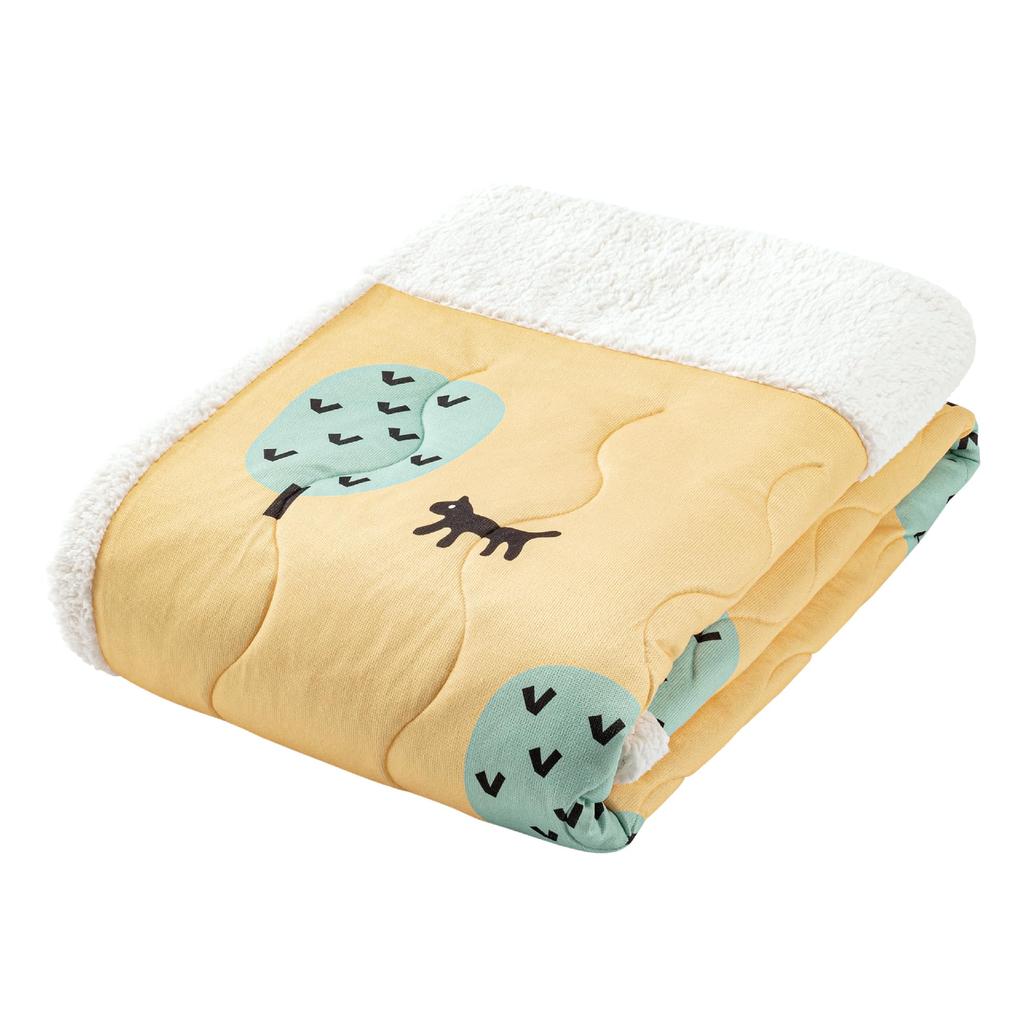 Nishikawa Atsuko Matano Quilt Blanket, Single, Washable, Fluffy Sheepskin Boa, MT3653, Cat and Tree Design, Yellow, FE03903026 — купить товар онлайн с бесплатной доставкой по всему миру!