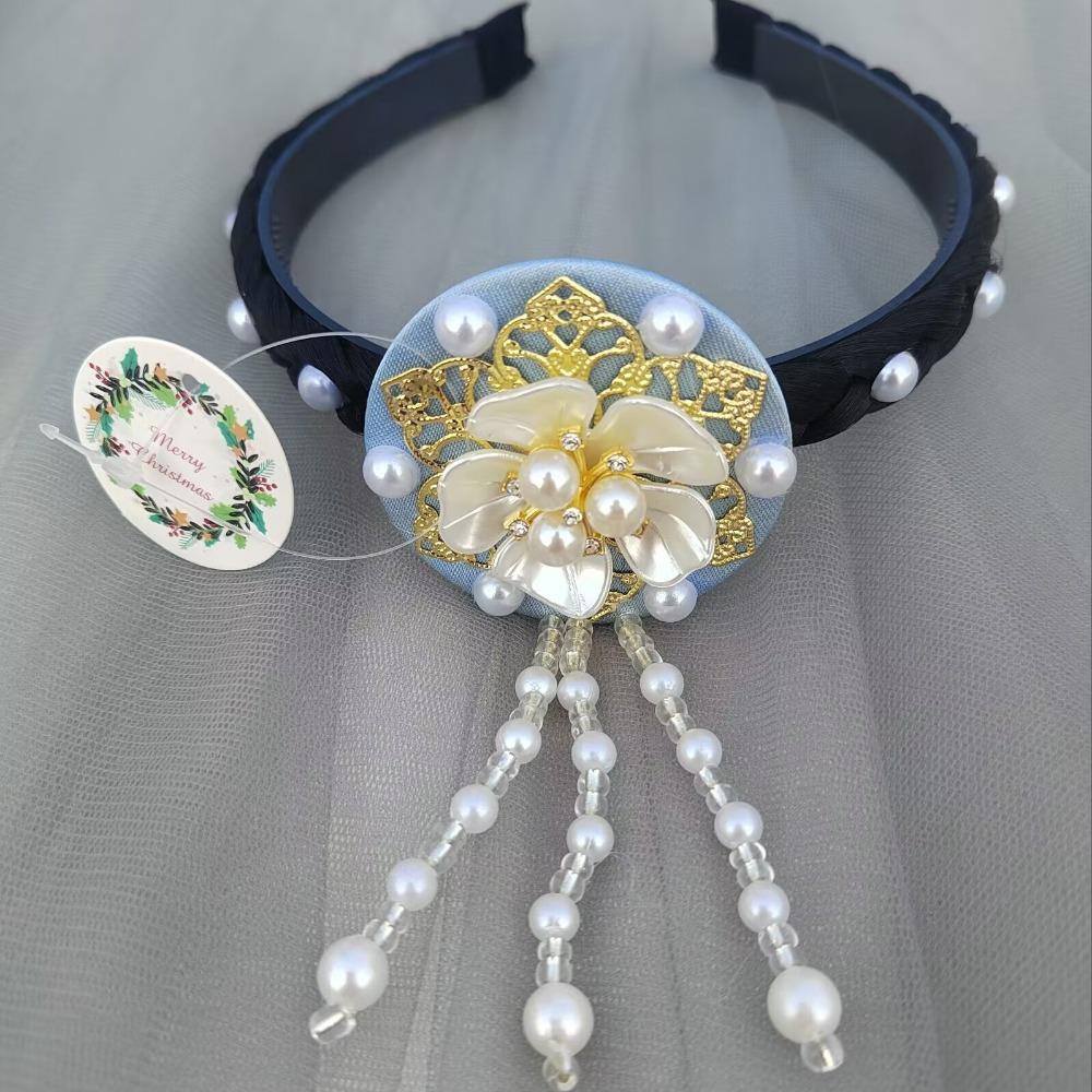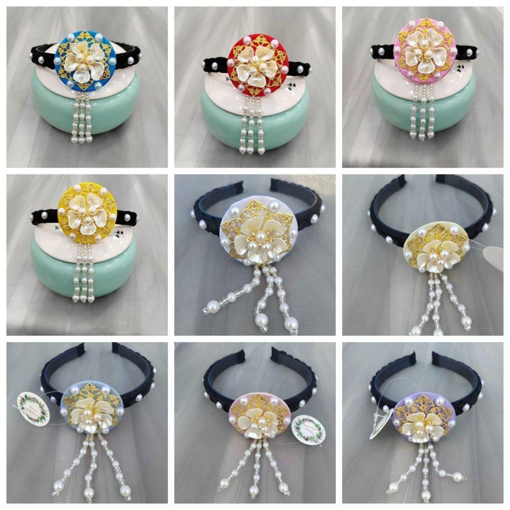 Повязка на голову из жемчуга Ханбок Цветочный сценический обруч для волос Классический корейский свадебный ободок