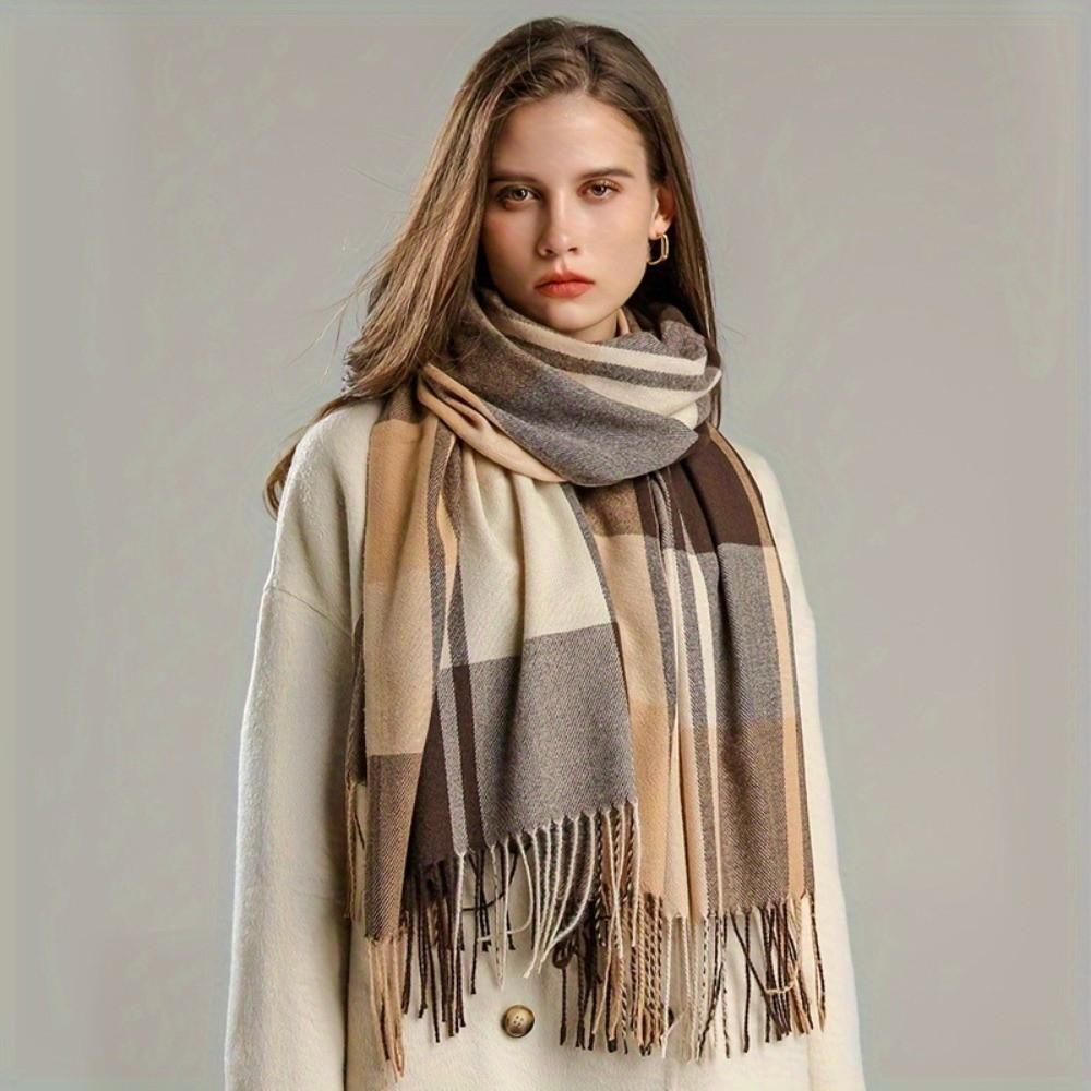 Keep Warm Imitation Cashmere Shawl Thick Shawl Wrap Simple Plaid Scarf Autumn Winter