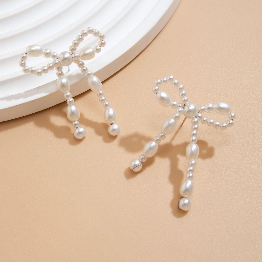 Pearls Beads Simple Earrings Pendientes Piercing Ear Stud Retro Bow Knot Stud Earrings Decoration