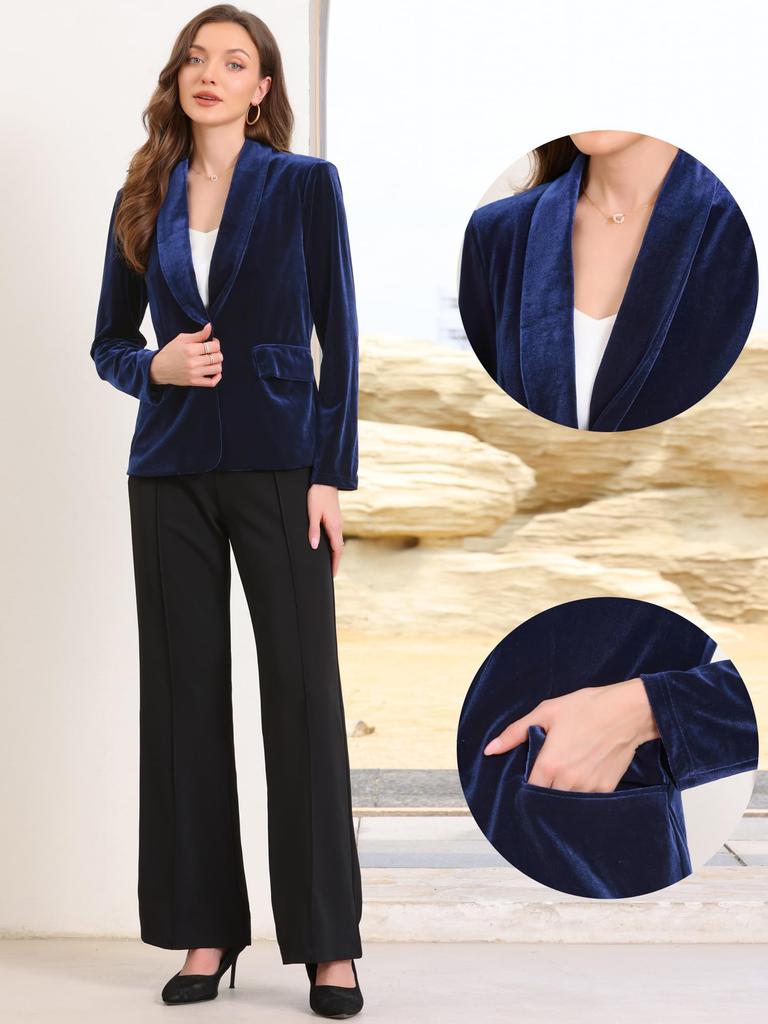 Женский бархатный блейзер Allegra K, шалевый воротник, длинный рукав, застежка на пуговицы, пиджак для делового костюма, королевский синий, размер M