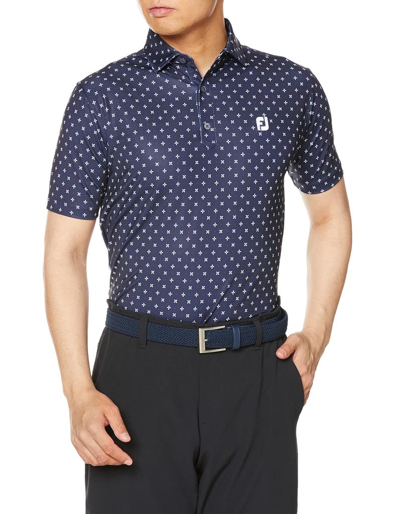 FootJoy Modern Classic Engineered Print Short Sleeve Shirt, Navy, Men's XL (80438-XL) — купить товар онлайн с бесплатной доставкой по всему миру!