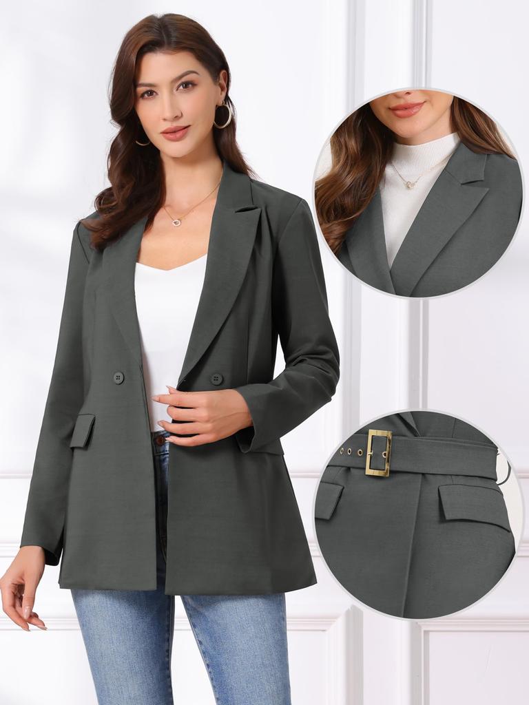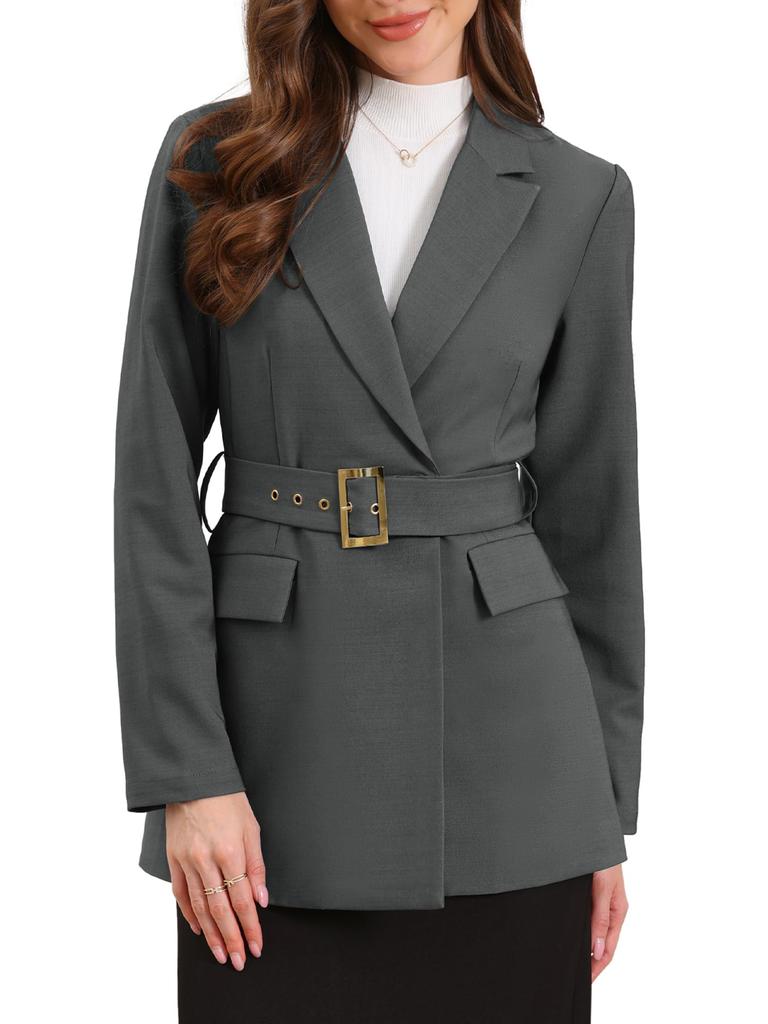 Женский рабочий блейзер Allegra K, Деловой, С длинным рукавом, С воротником, Нарядный, Повседневный, С поясом, Темно-серый, Размер M