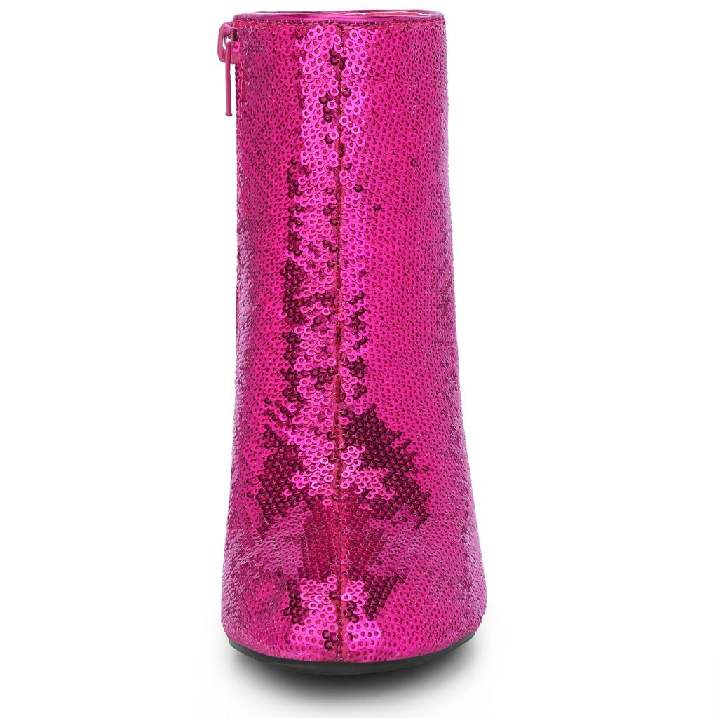 Allegra K Women's Round Toe Sequin Block Heel Ankle Boots, Hot Pink, Size 24.5cm