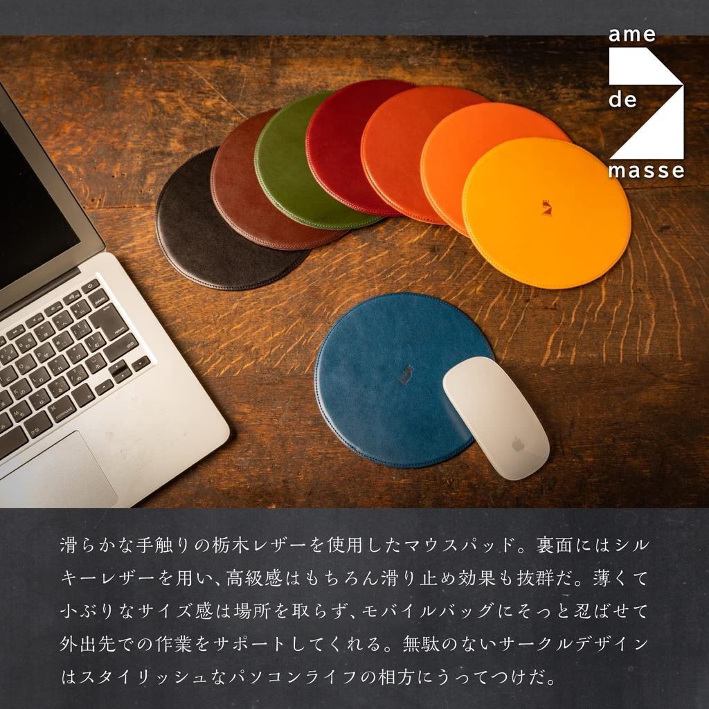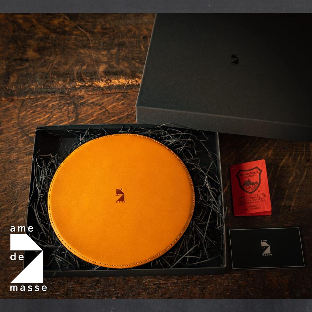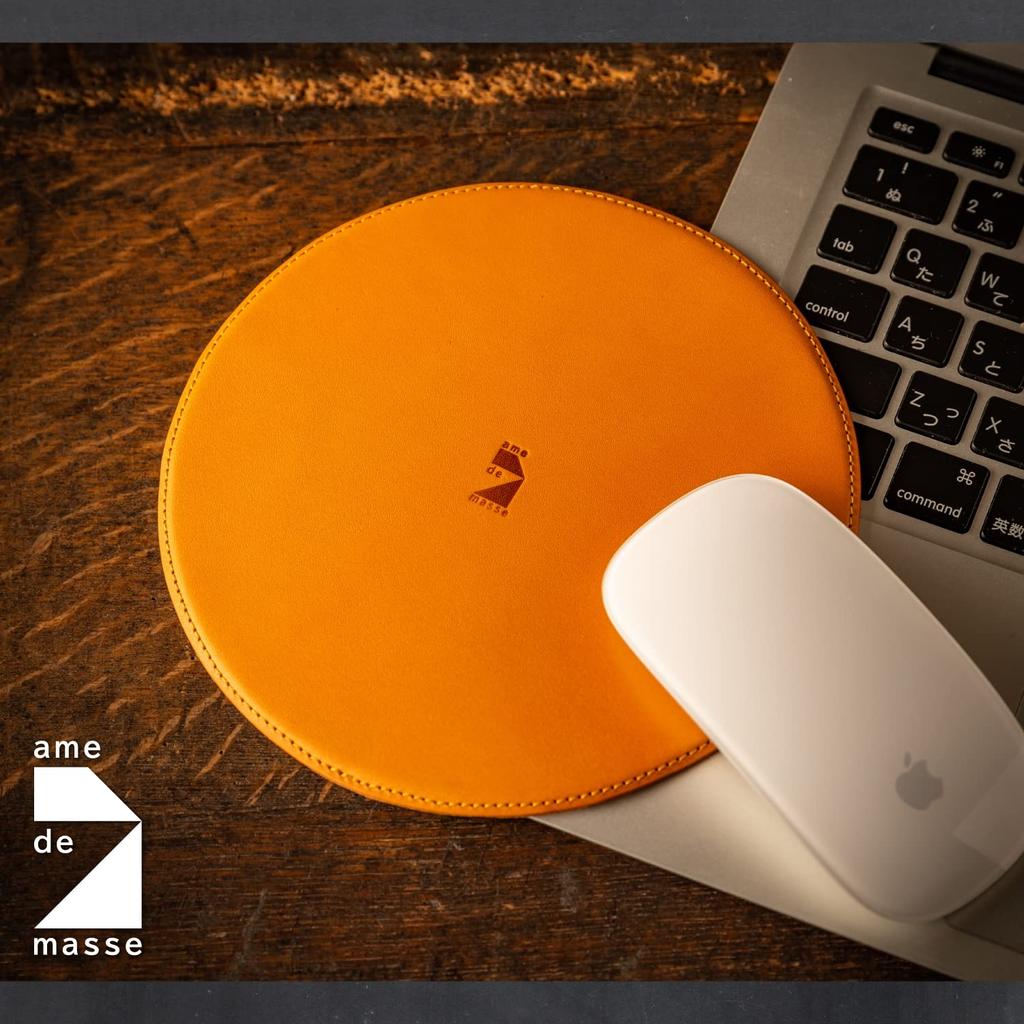 Am de Mas MP-037 Slim Round Mouse Pad, Made in Japan with Genuine Tochigi Leather, Portable and Simple for Business Use, Camel