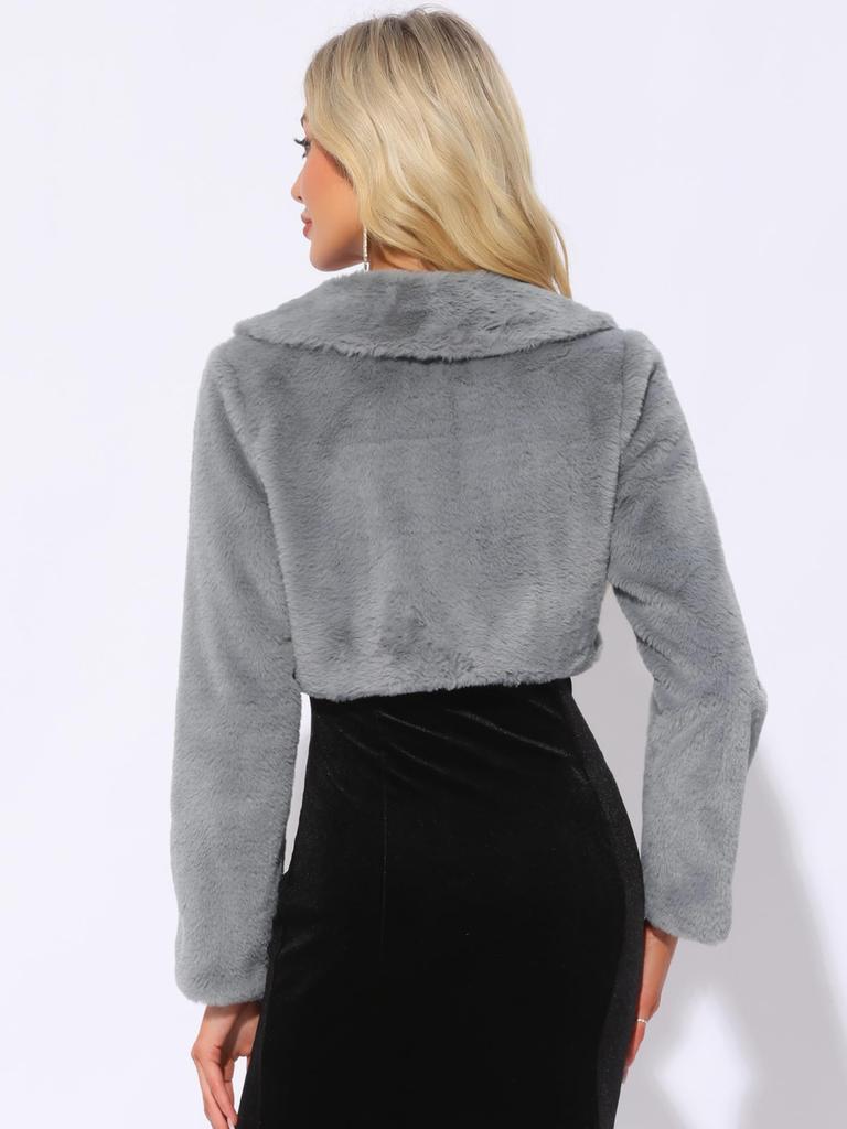 Allegra K Women's Elegant Cropped Jacket/Cardigan/Bolero with Faux Fur, Round Collar, Bow Tie, and Open Front, Gray, Size M