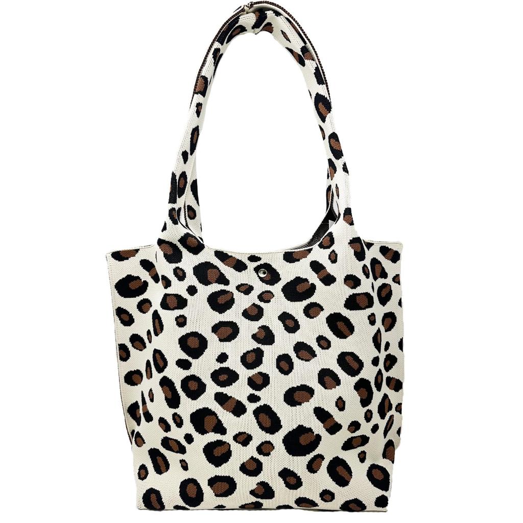 Bagging Tote Bag, Women's, One-Shoulder, A4 Size, Knit, Stiff, Large, Kobe Liberal, nt01 (Leopard Print)