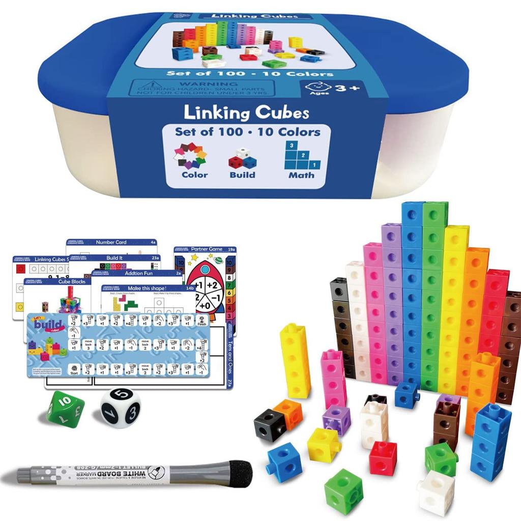 СЦЕПЛЯЮЩИЙСЯ КУБИК (Синий подарочный набор) [Включает карточки с заданиями для обучения во время игры] 100 блоков, Numberblocks, кубики, подарок для детей 2, 3, 4, 5 и 6 лет