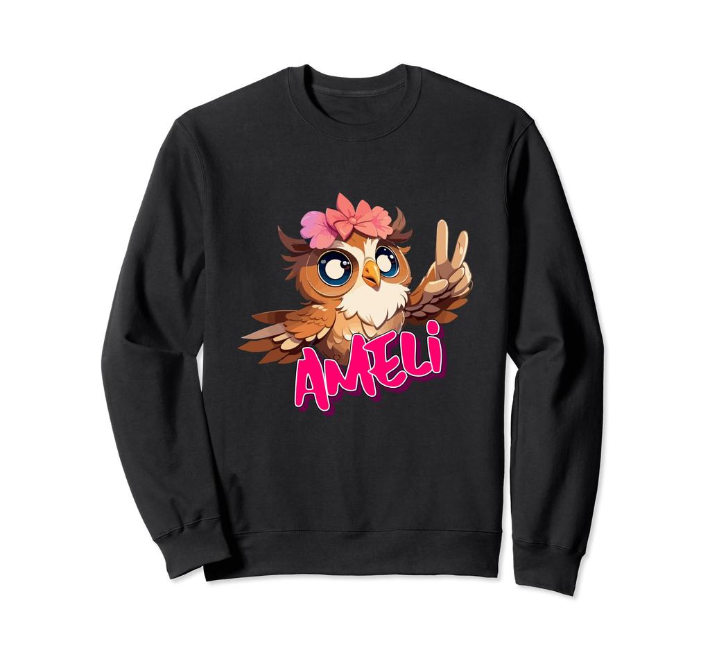 AMELI - Adorable girl name with cute OWL sweatshirt