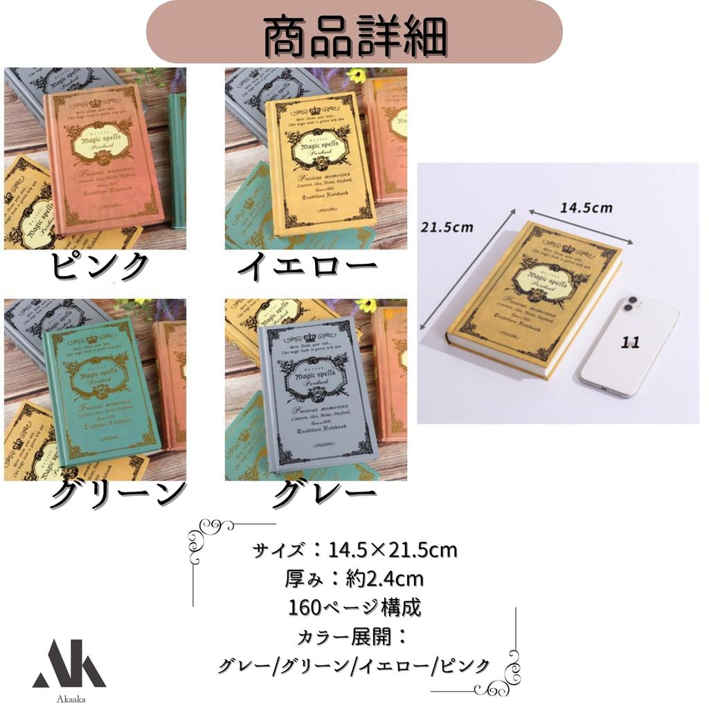 Akaaka Antique Notebook, A5, Western Style, Journal, Horizontal Ruled, 160 Pages, Thick, Grimoire Design (Gray)