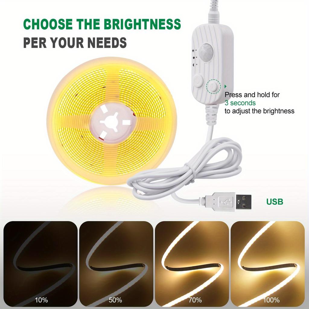 Linear COB LED Strip Lights PIR Motion Sensor USB Flexible 5V Auto ON/OFF Tape Ribbon Diode Lighting for TV Backlight Room Decor