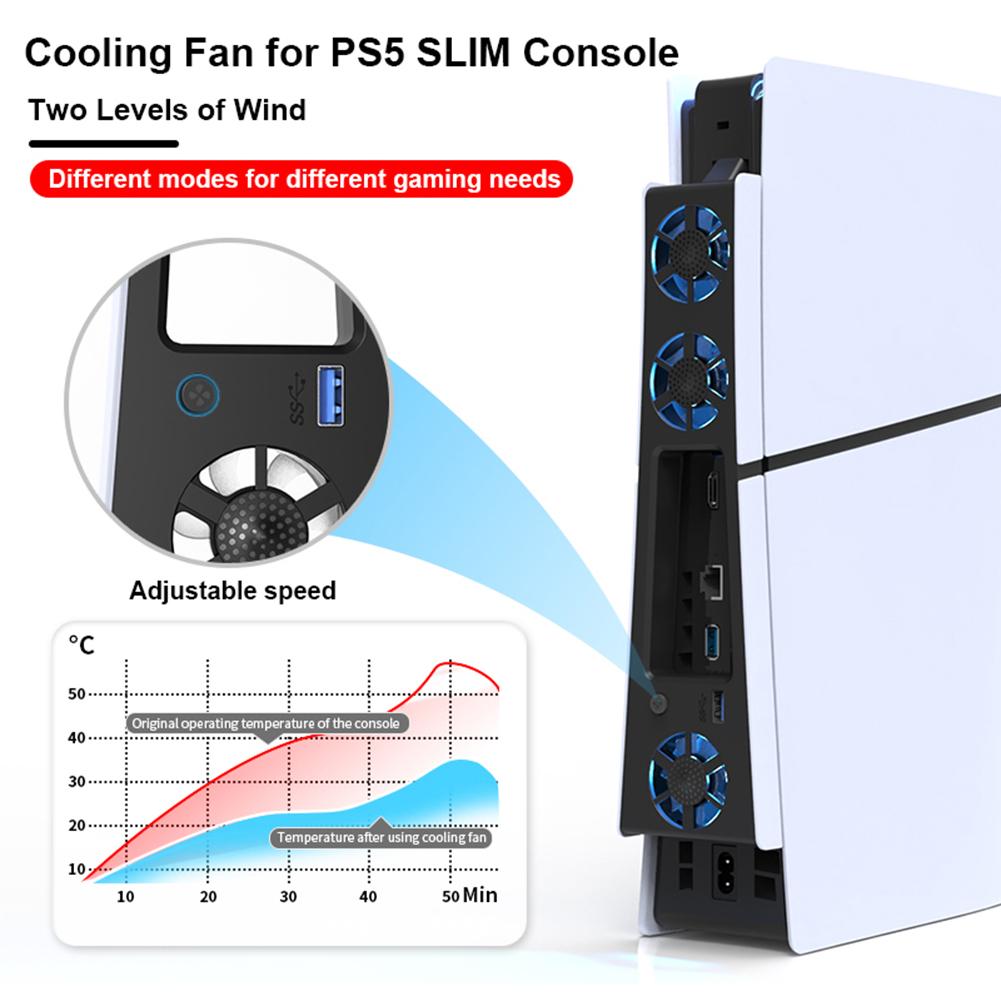 Тихий вентилятор для консоли PS5 Slim с регулируемой скоростью Эффективная система охлаждения с портом USB 3.0 для Playstation 5 Slim — купить товар онлайн с бесплатной доставкой по всему миру!