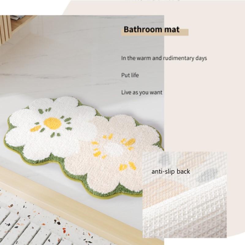 Inyahome Flower Bathroom Rugs Mat with Soft Superfine Fiber Non Slip Durable Bedroom Mats Machine Washable Door Mats for Bathtub