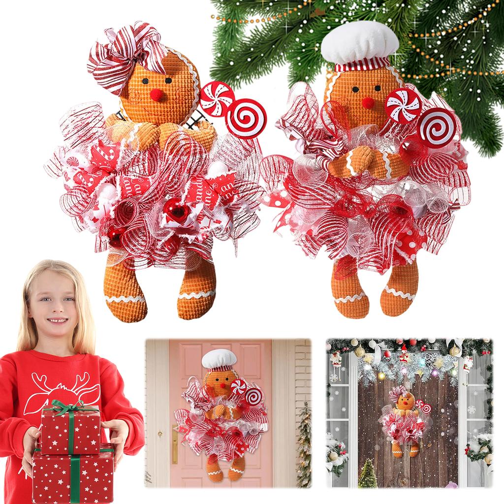Рождественский венок на дверь Рождественский венок с куклой пряничного человечка Рождественская подвесная табличка с пряничным человечком Рождественские украшения для входной двери