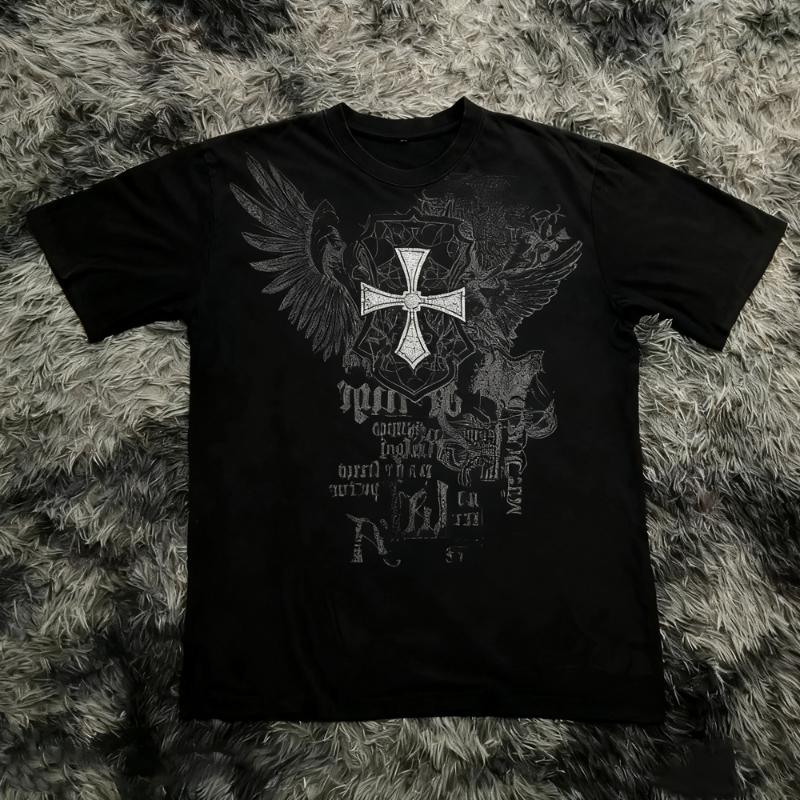 Классическая футболка в готическом стиле Y2K, принт, футболка оверсайз, уличные футболки, готические топы из хлопка с круглым вырезом, новая мужская женская футболка