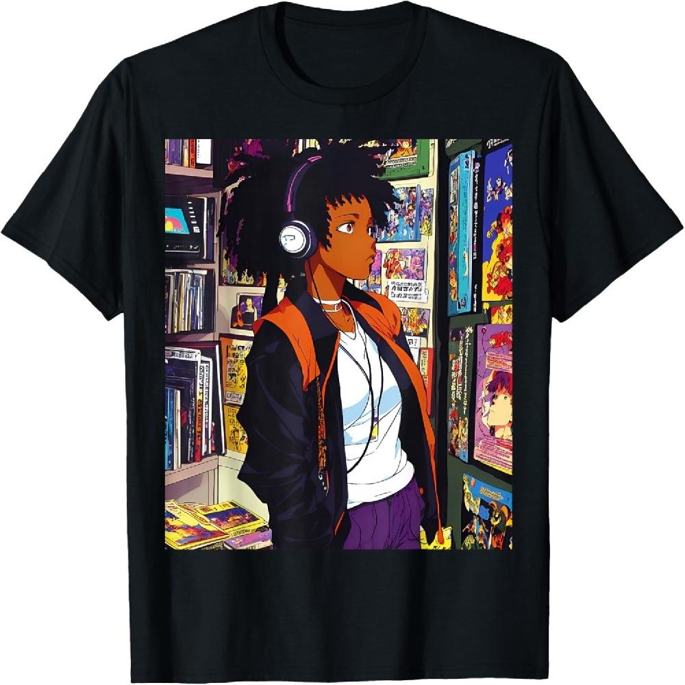Аниме Черная девушка Лоу-фай Музыка 90-х Ретро Афро Мультяшная Футболка