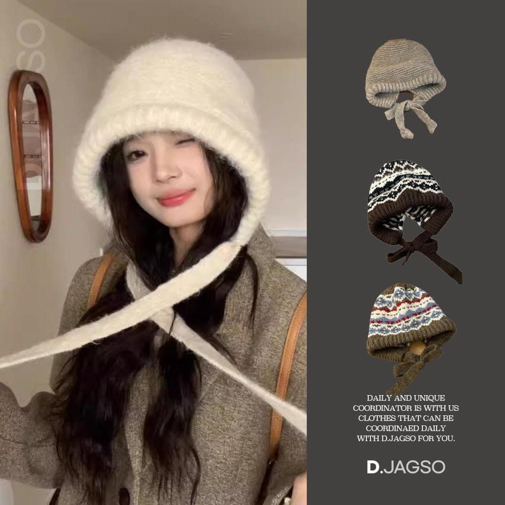 Women's Knit Argyle Snowflake Balaclava Beanie Hat