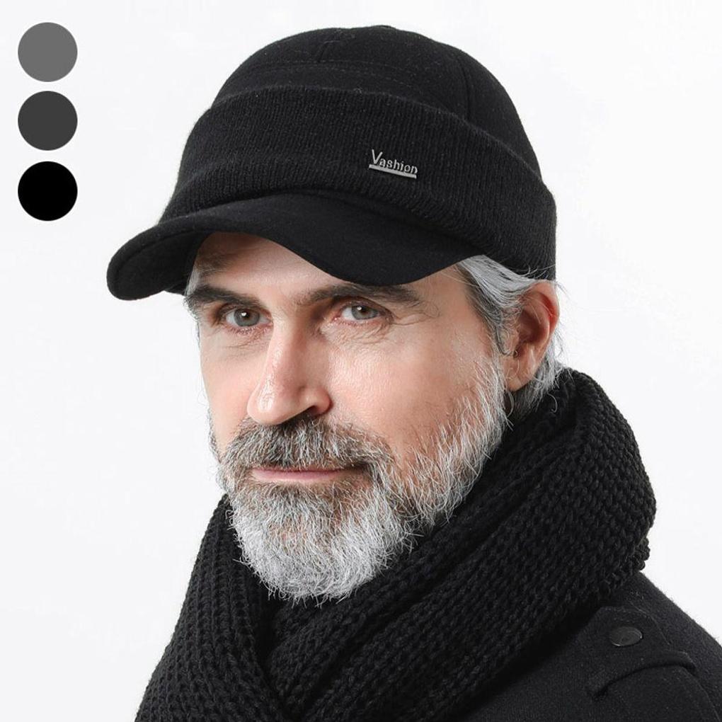Winter warm daily knitted earflap ball cap for middle-aged and older people
