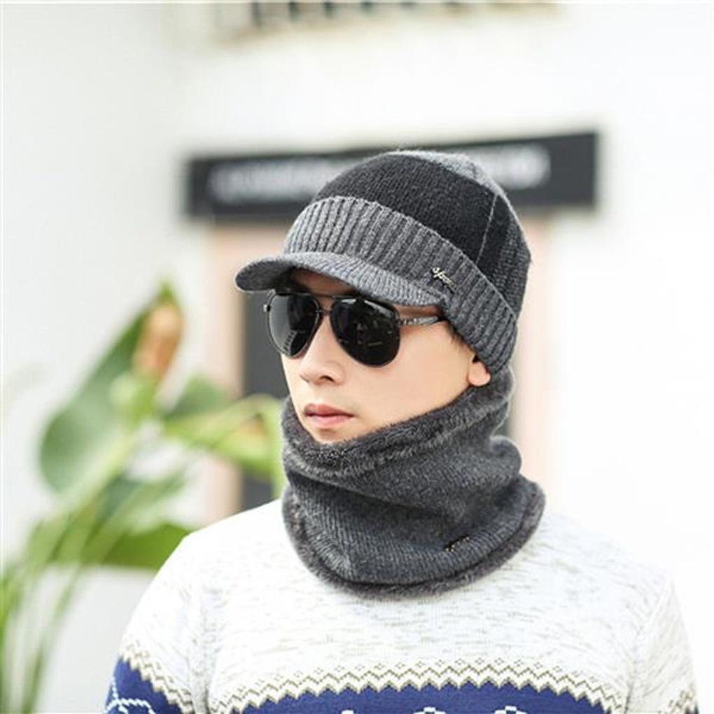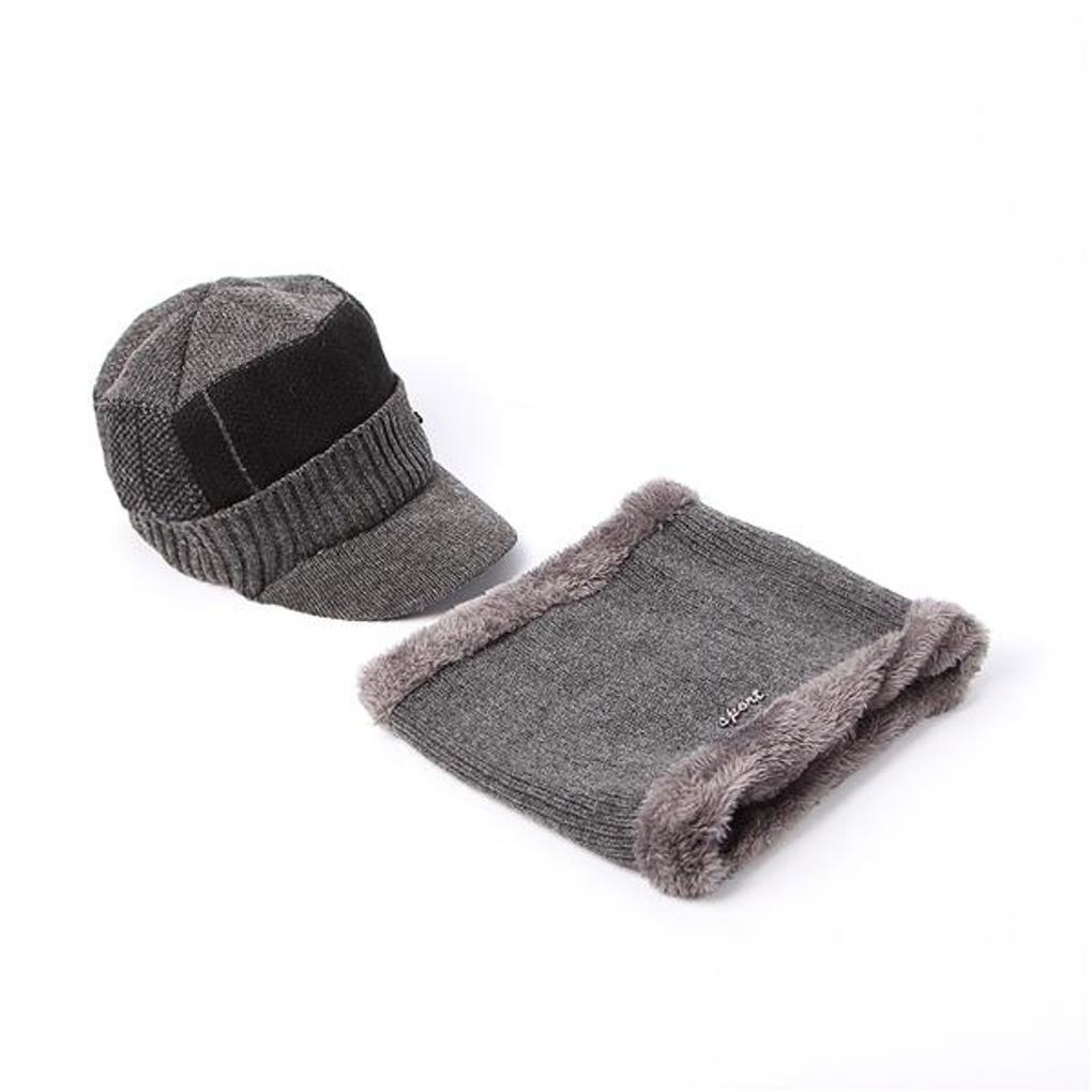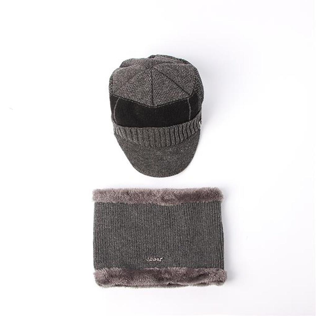 Набор вязаных манишки и шапки с козырьком (Серый)/Меховая шапка Зимняя шапка