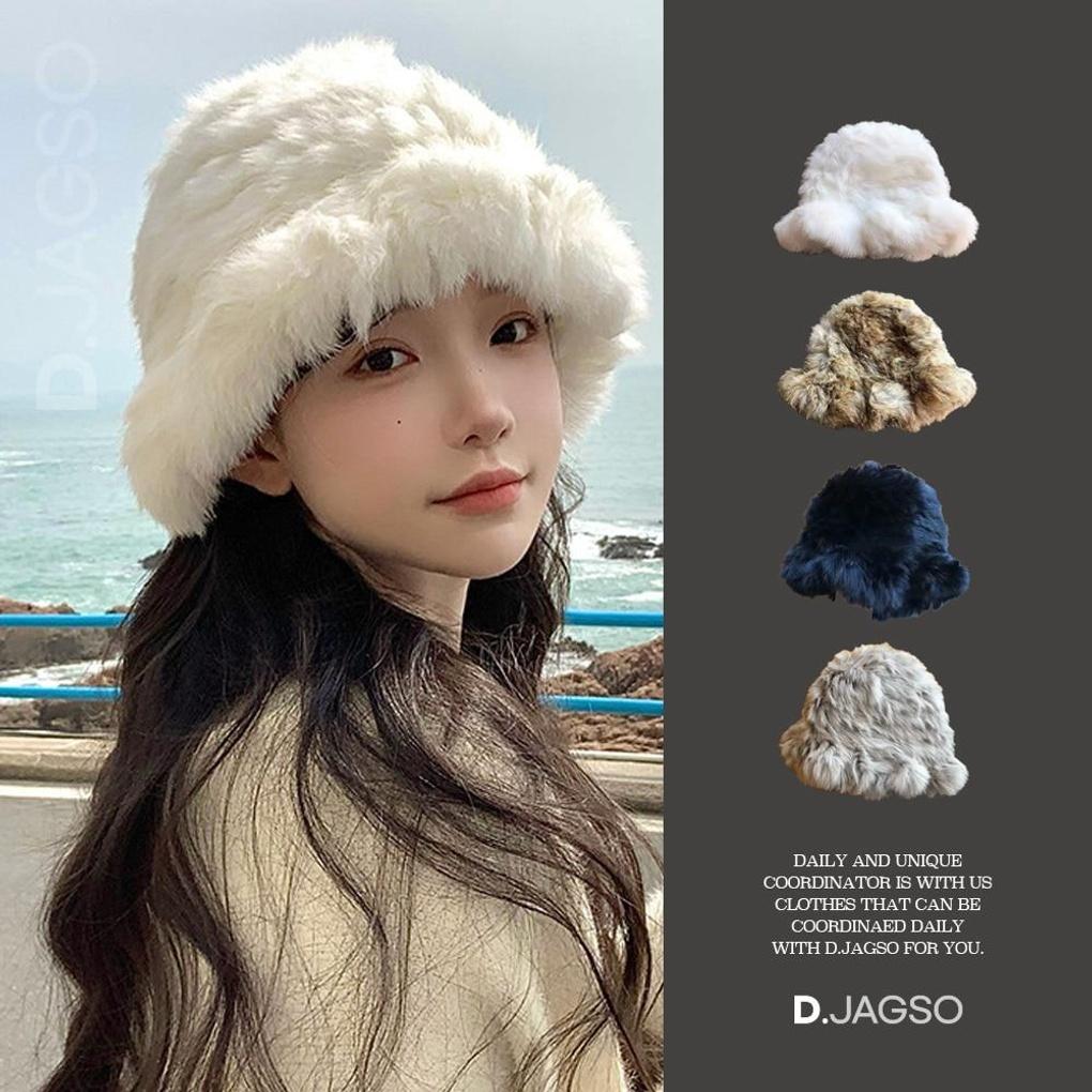 Женская зимняя шапка-бини в форме ведра из кроличьего меха — купить товар онлайн с бесплатной доставкой по всему миру!