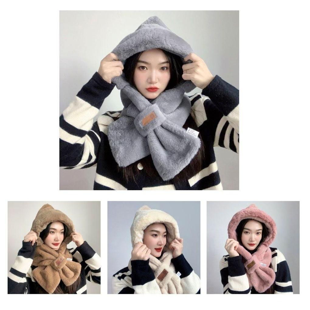 Роскошный меховой мягкий шарф с капюшоном зимняя шапка шарф