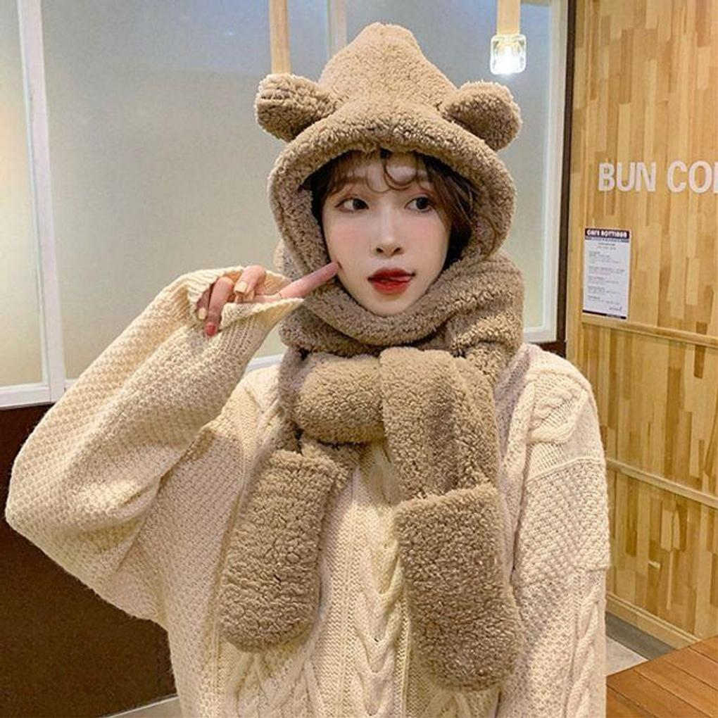 Шапка-мишка, шарф, шапка с ушками, милая зимняя шапка