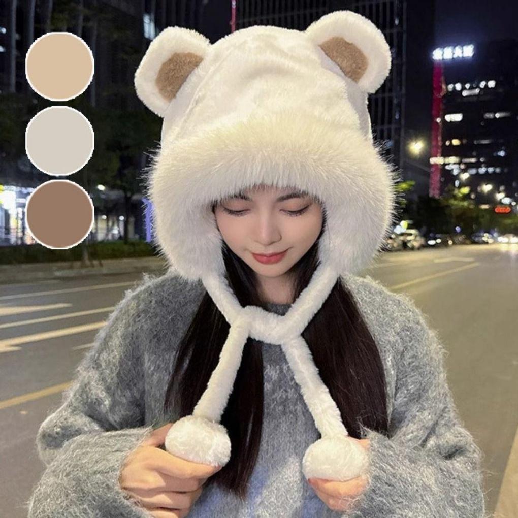 Зимняя теплая милая шапка с меховым помпоном и медвежьими ушками