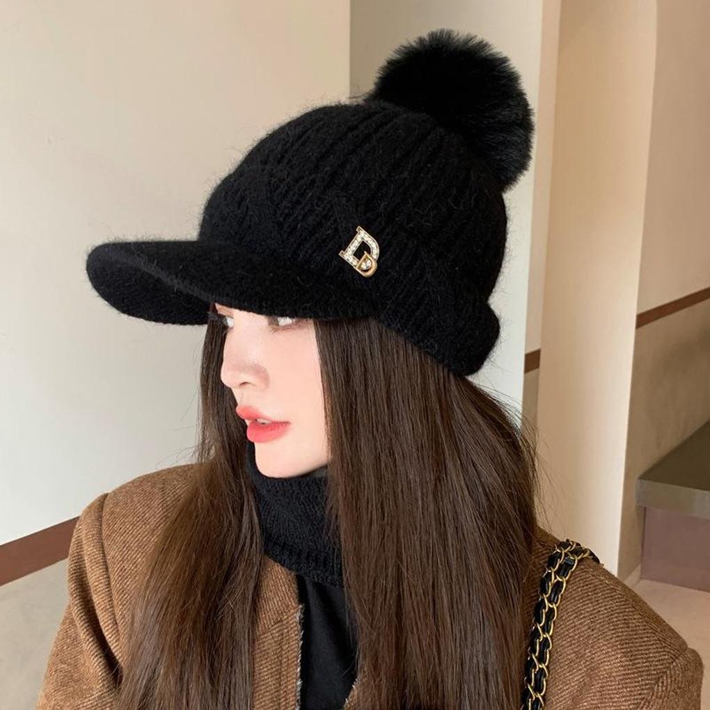 Women's Golf Hiking D Initial Winter Knit Pom Pom Hat — купить товар онлайн с бесплатной доставкой по всему миру!