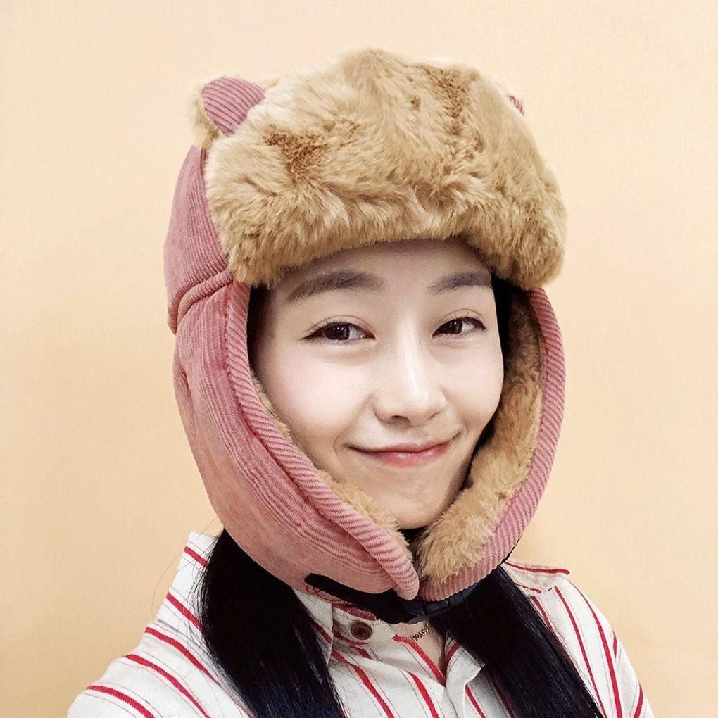 Зимняя повседневная розовая меховая шапка-ушанка с медвежьими ушками