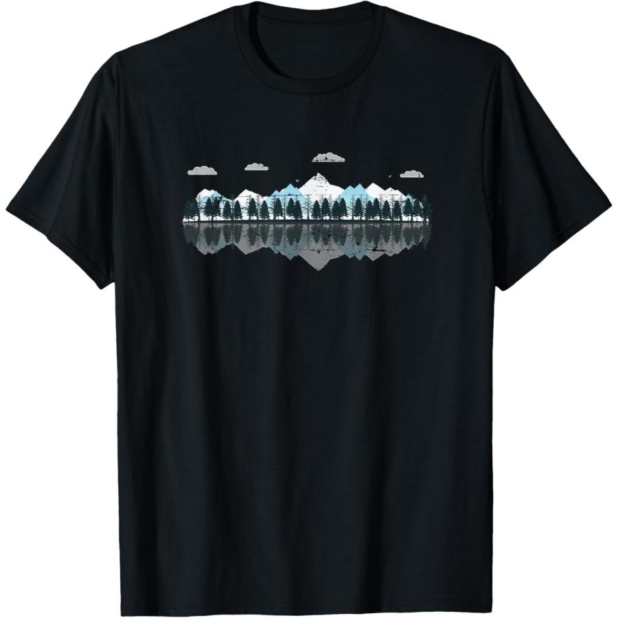 Футболка с изображением горного пейзажа, леса, деревьев, отражения, природы