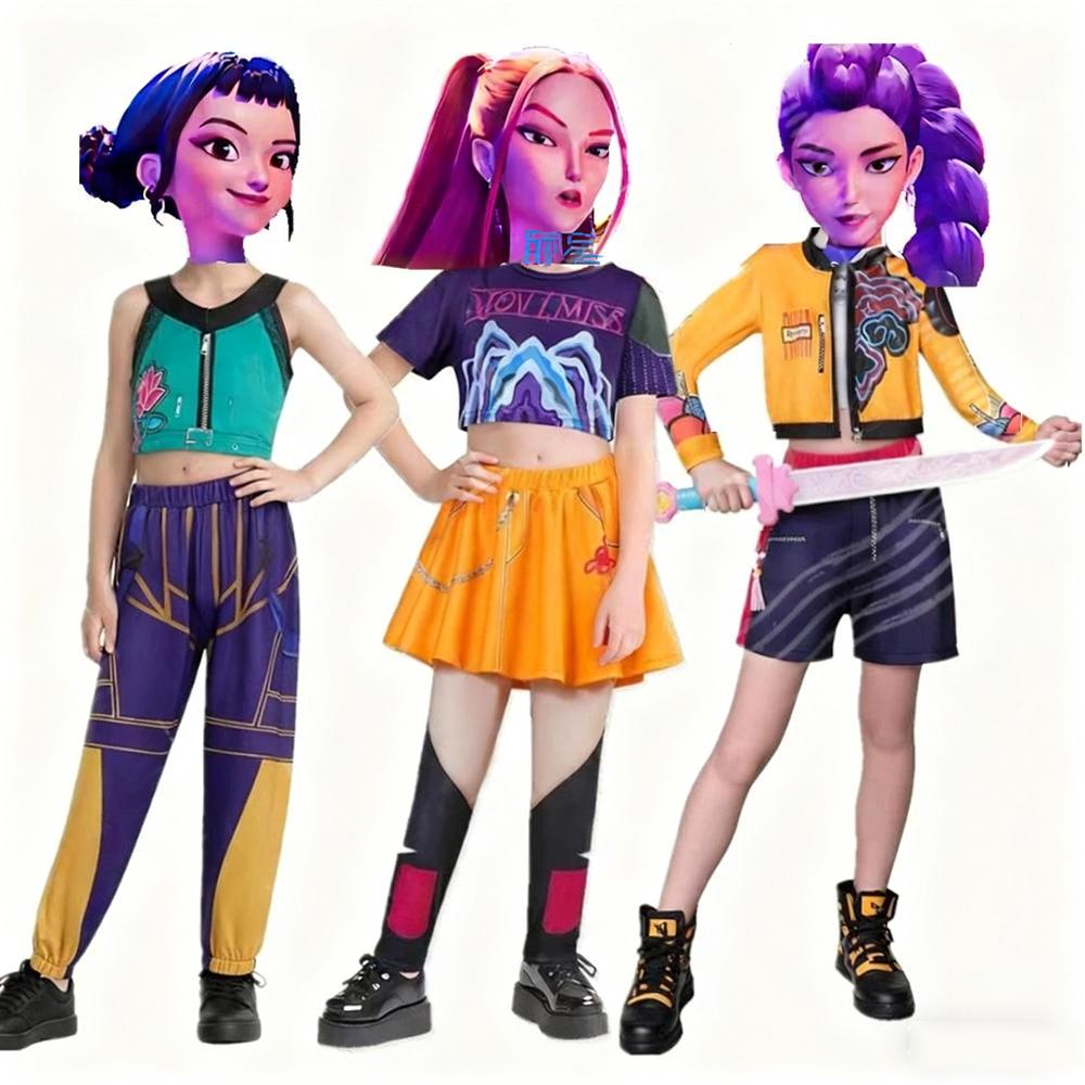 Фильм K-Pop Дети Мира Руми Зои Охотники на Демонов Косплей Костюм для Девочки Вечеринка на Хэллоуин Сценический Узор Одежда для Ролевых Игр