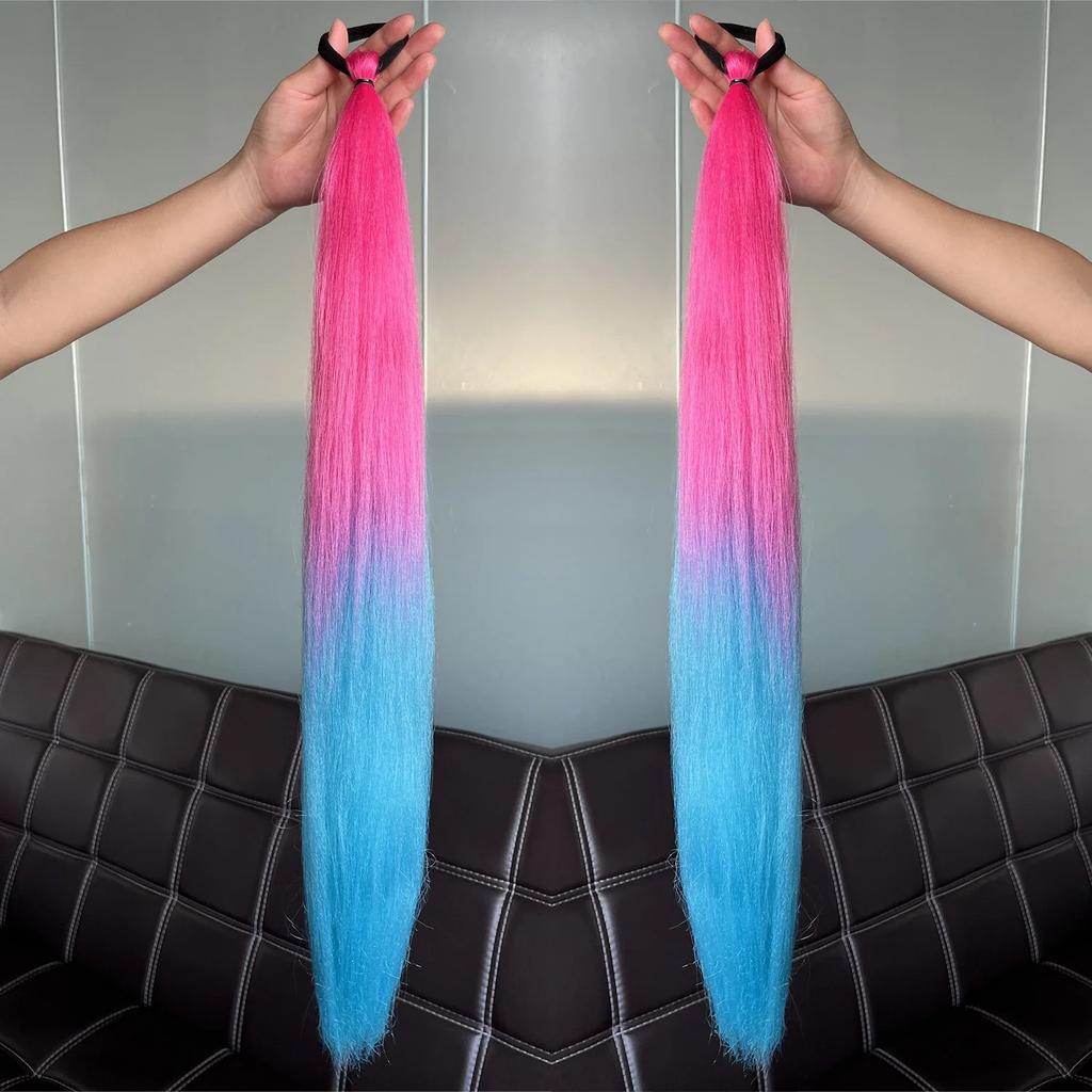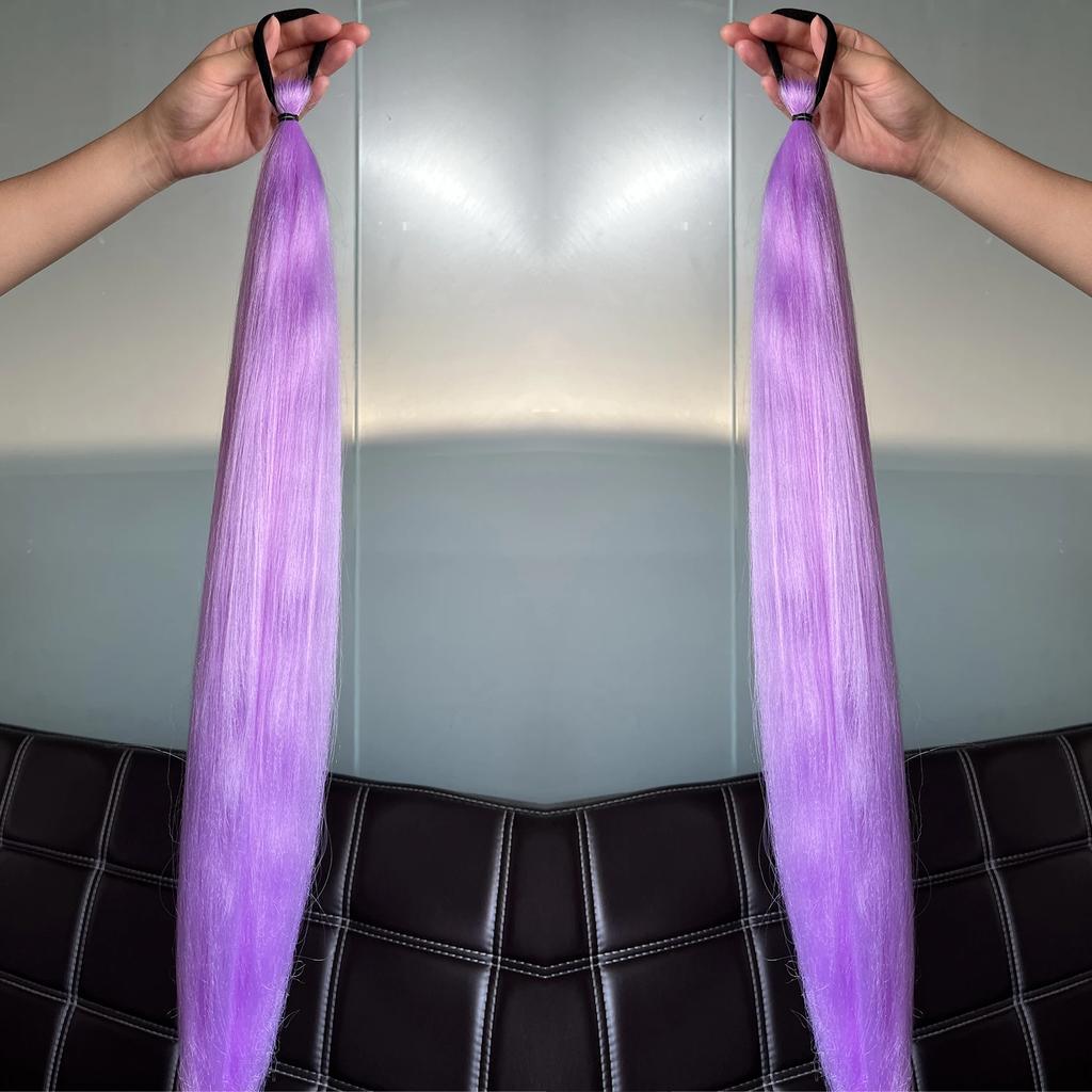 2 шт. Синтетический фиолетовый хвост на резинке, длинный прямой хвост, женские аксессуары для волос на Хэллоуин