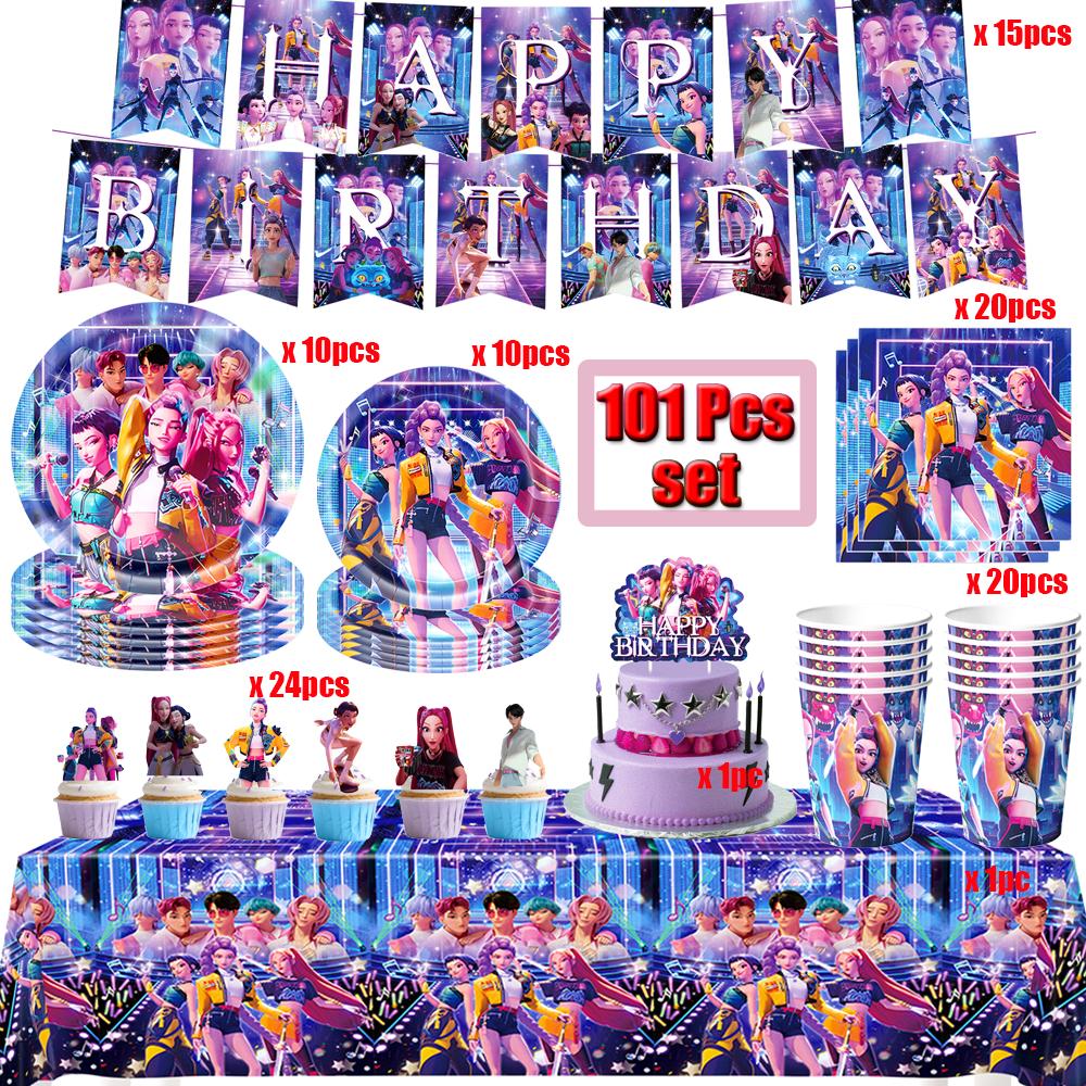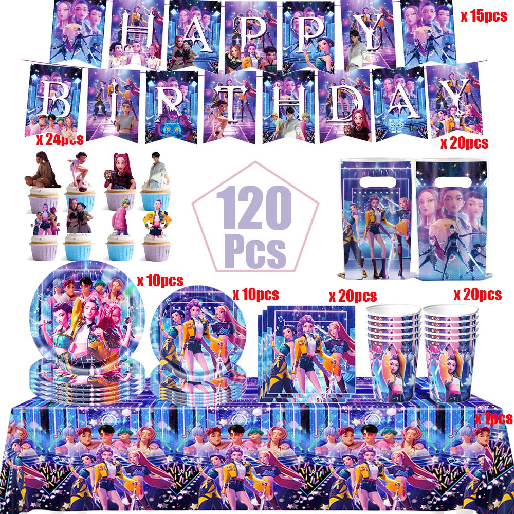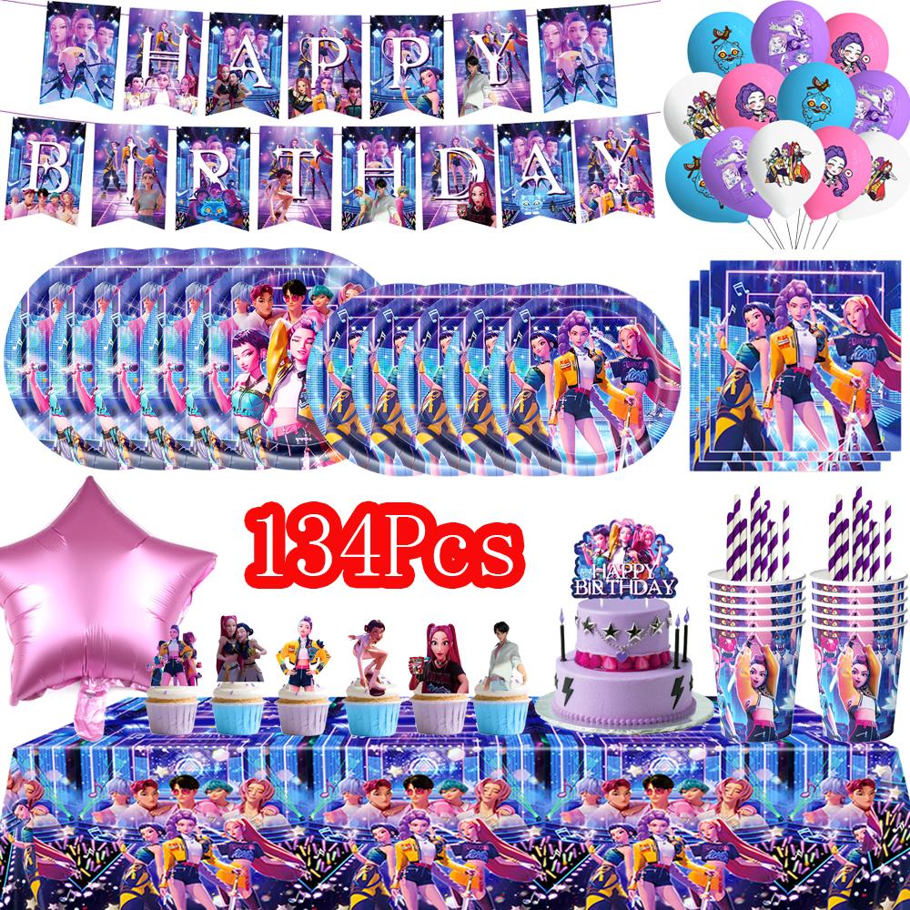 К-поп Охотники на демонов Украшение на день рождения Воздушные шары Принадлежности для вечеринки Одноразовая посуда Баннер Серпантин Принадлежности для детского праздника Подарки