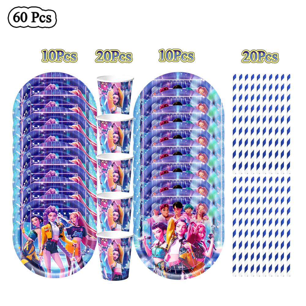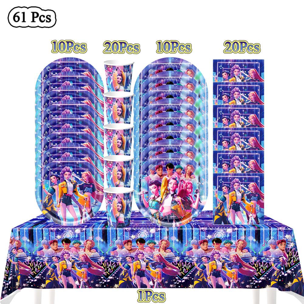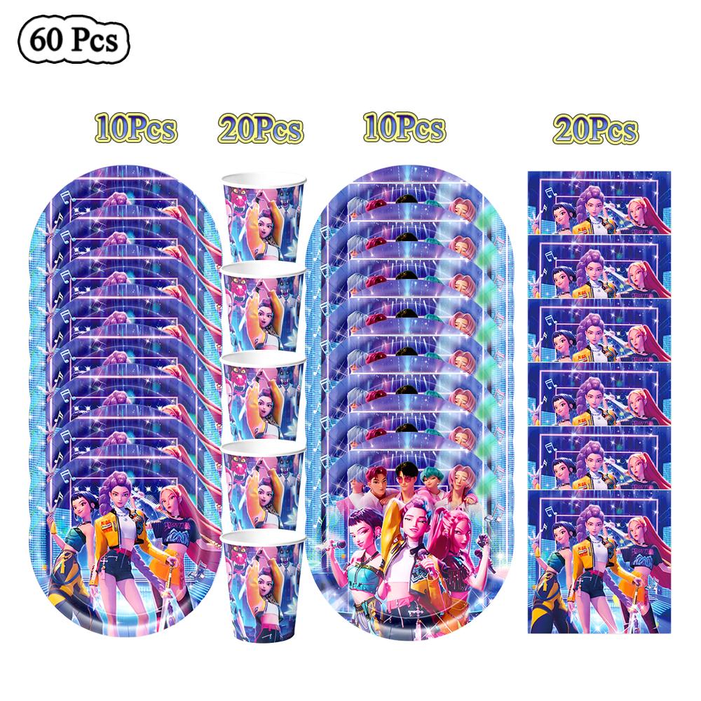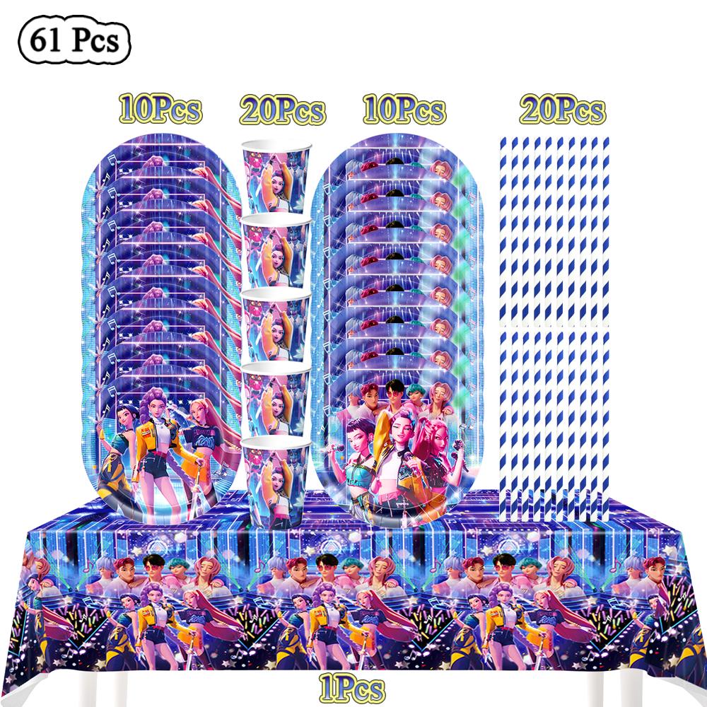 К-поп Охотники на демонов Украшение на день рождения Воздушные шары Принадлежности для вечеринки Одноразовая посуда Баннер Серпантин Принадлежности для детского праздника Подарки