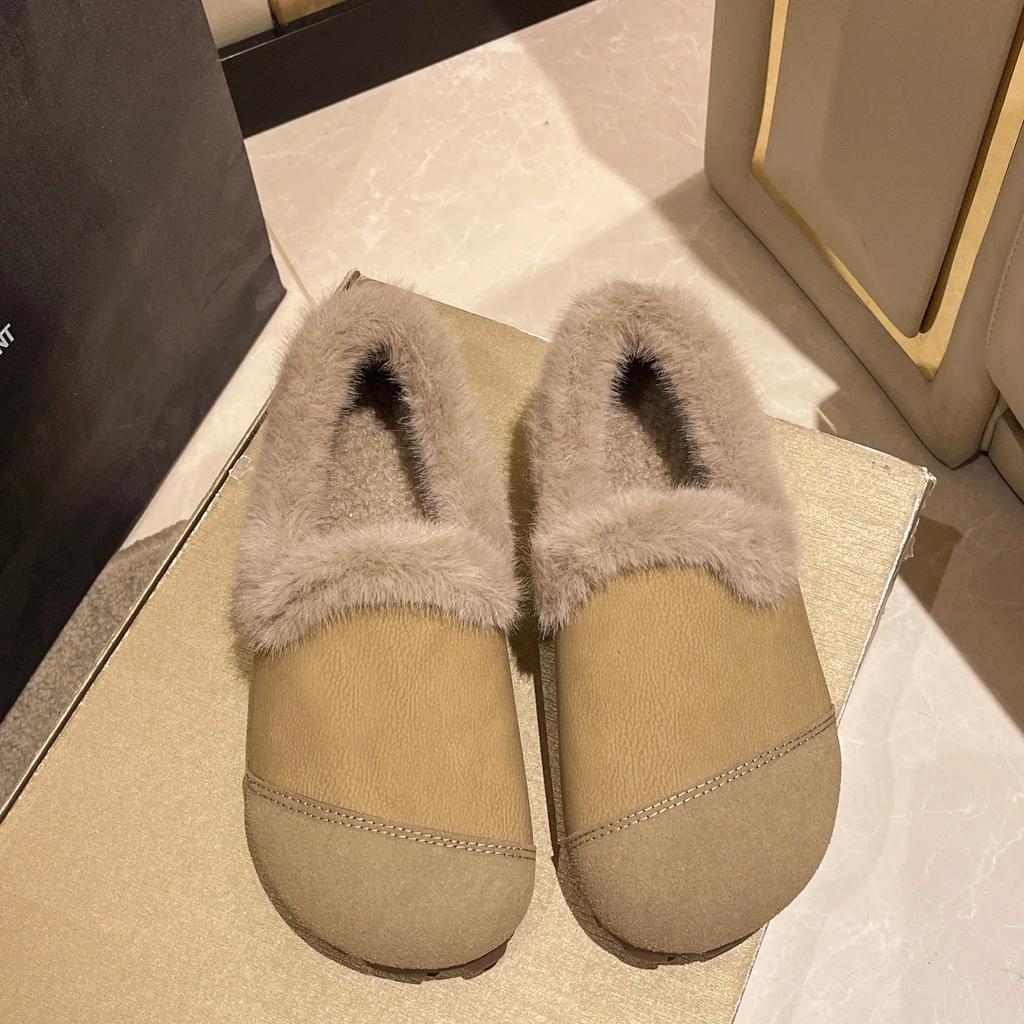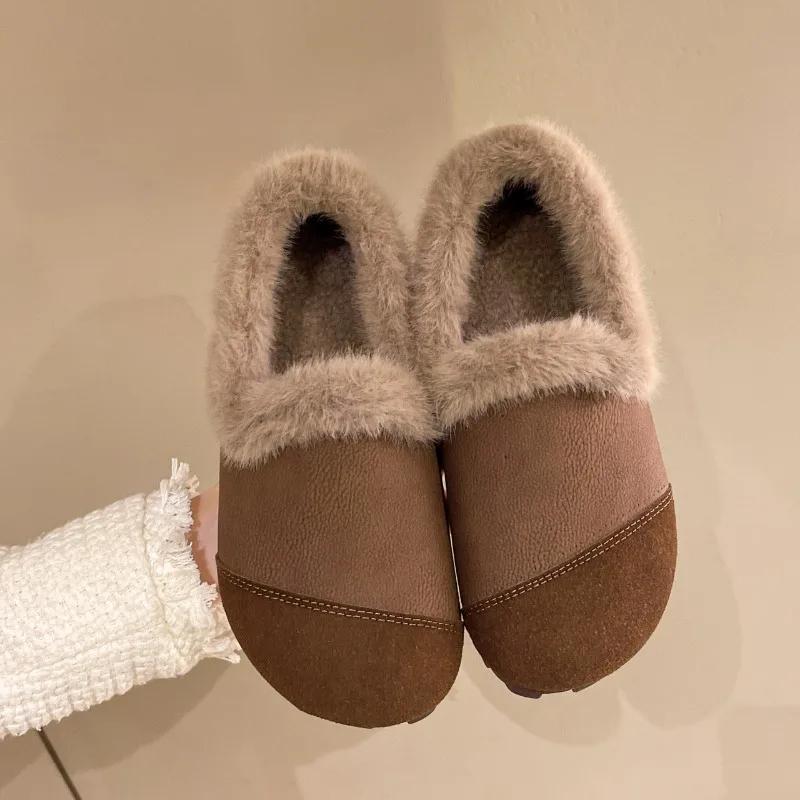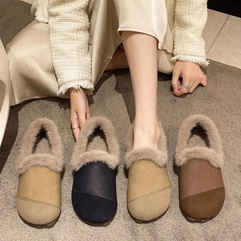 Туфли на плоской подошве для женщин, меховые хлопковые туфли 2024 года, зимние повседневные женские мокасины с круглым носком, туфли на плоской подошве, новые женские мокасины, мягкие мокасины