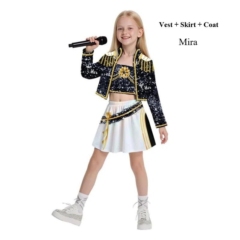 Девочки Дети Зои Руми Мира Косплей Идол Черный Сценический Костюм K-Pop Костюм Охотников на Демонов Детский Костюм для Хэллоуина Карнавальный Костюм