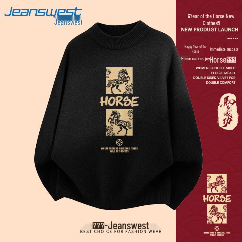 Jeanswest Men's JZS Golden Horse Half-High Collar Knit Sweater